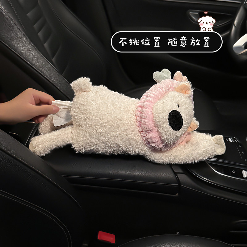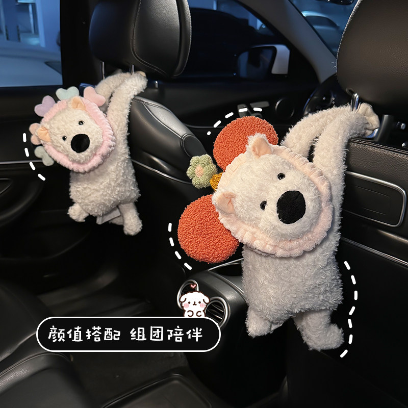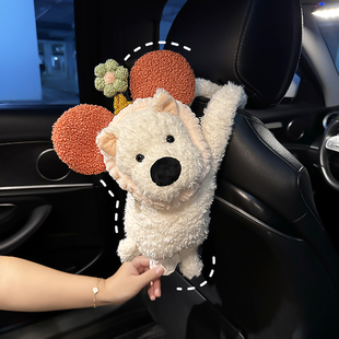 车载纸巾盒2024新款 可爱西高地狗公仔玩偶汽车扶手箱抽纸收纳挂袋