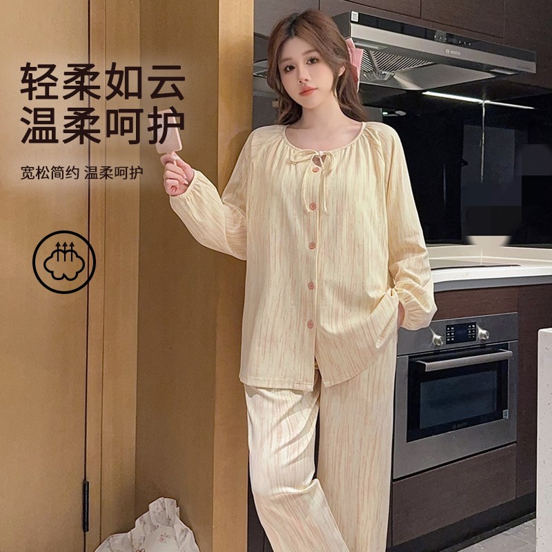 春秋 产后5月份6月子服a类纯棉产妇喂奶哺Z乳套装 孕妇睡衣夏季 薄款