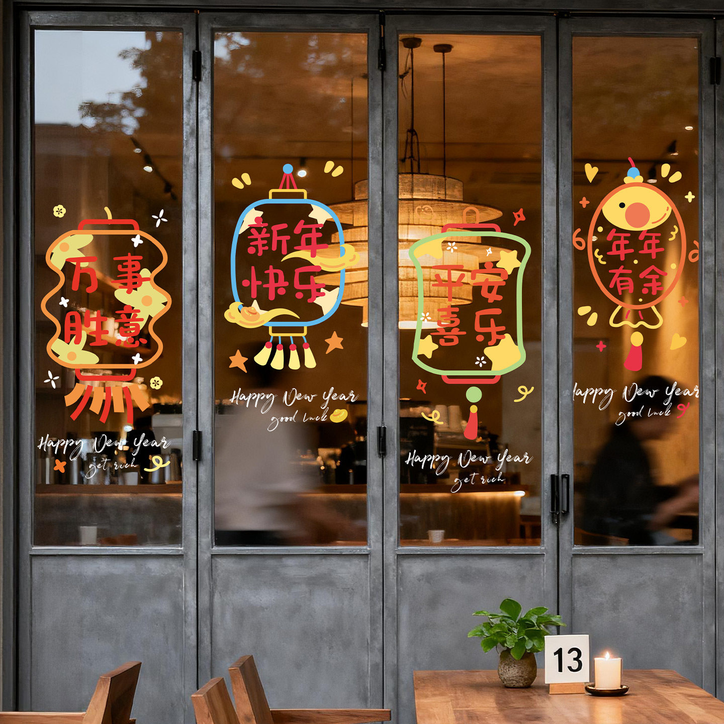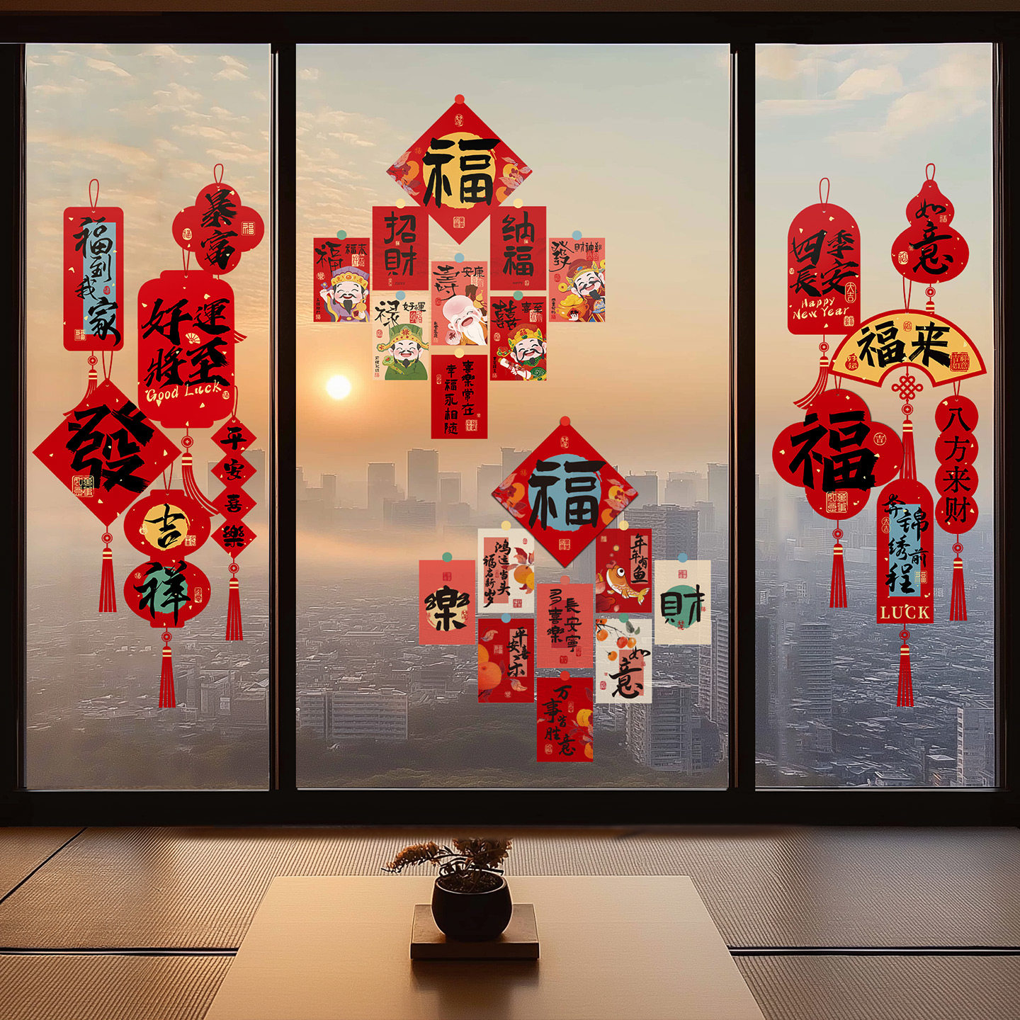 马年门贴窗花窗户玻璃贴静电贴2026福字新年墙贴橱窗春节过年装 饰