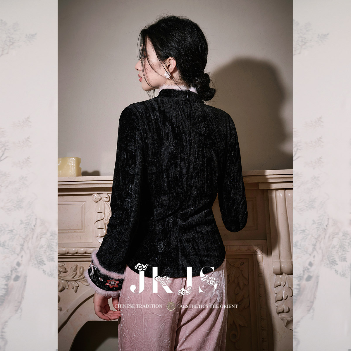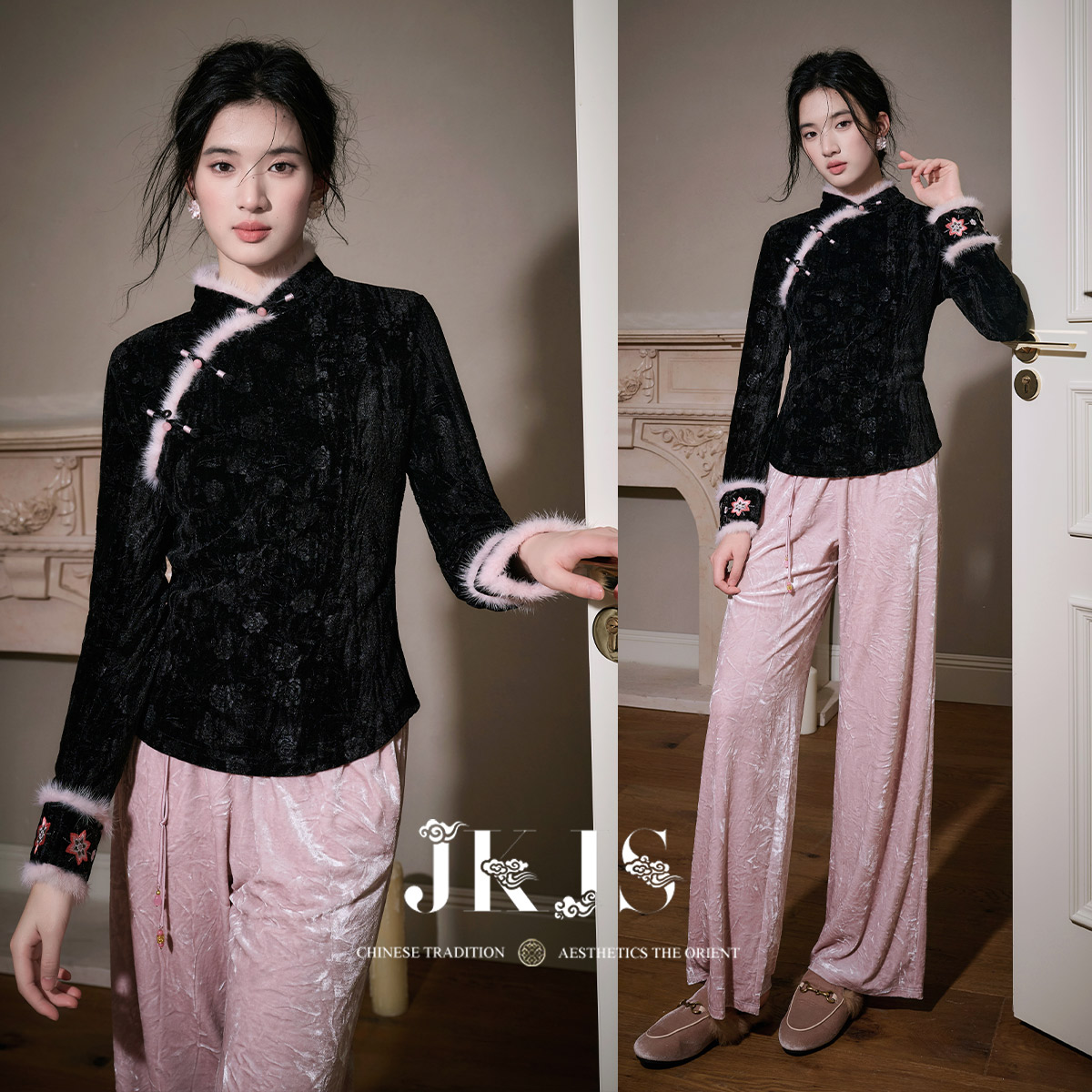 女秋冬内搭可外穿长袖 JKJS 打底衫 水貂毛 T恤盘扣上衣 嘴桑云