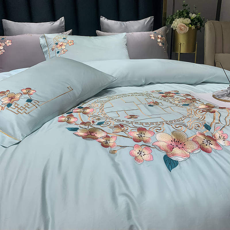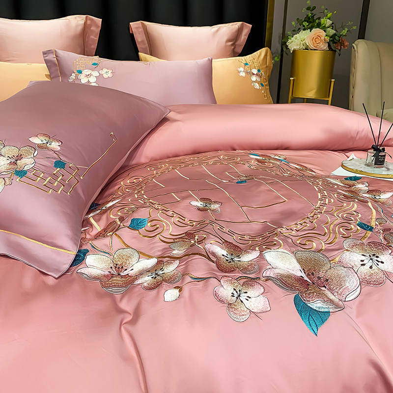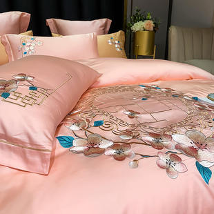 新中式 婚庆四件组高档长绒棉四件套纯棉全棉被套床单结婚床上用品