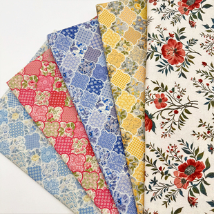 波西米亚风拼接花卉印花布加密棉麻布料装 饰桌布面料diy手工布头