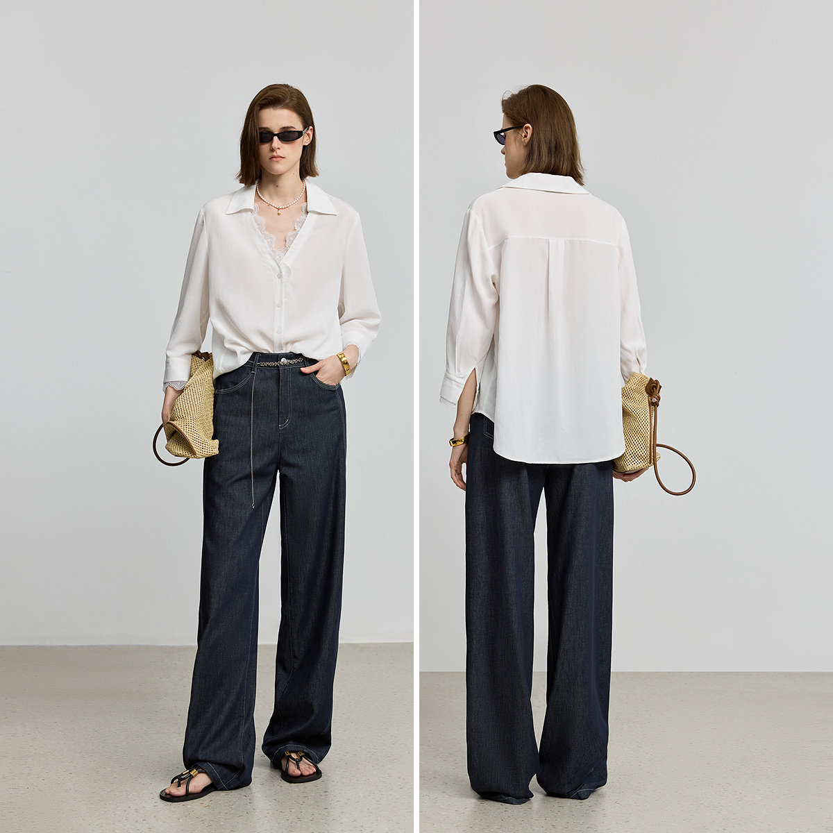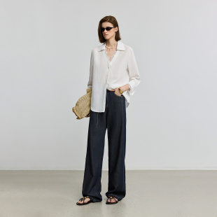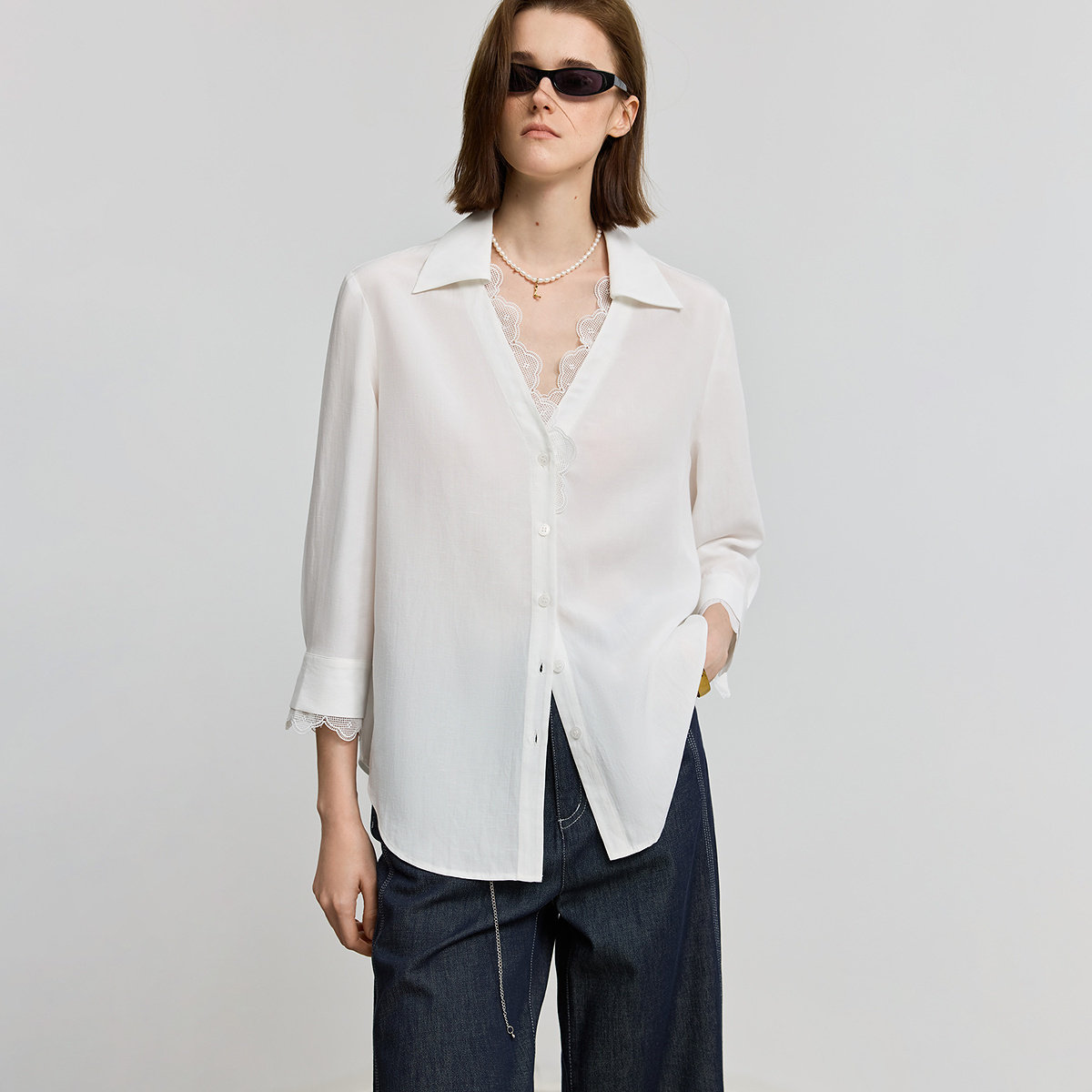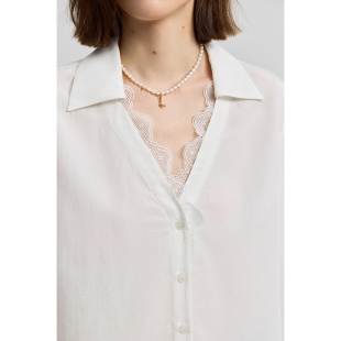 白色衬衫 绣花V领休闲七分袖 外套女 莱赛尔亚麻法式 LILY夏新款