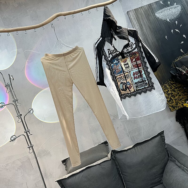 性感防晒小脚九分裤 显瘦百搭时尚 千溢目欧美风新款 网纱透视打底裤