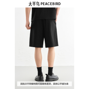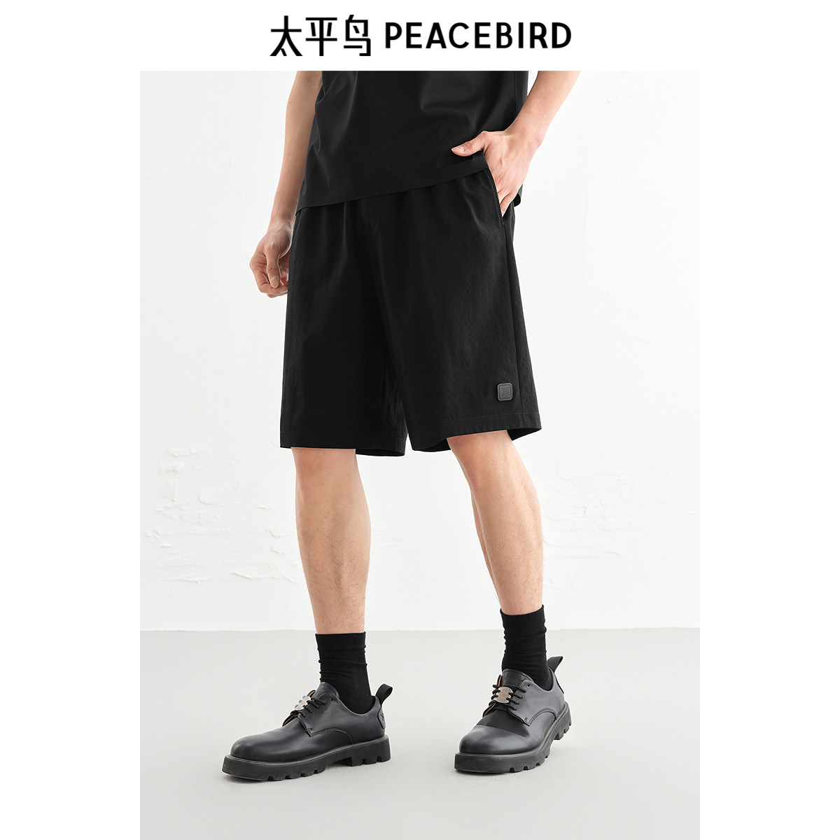品质五分裤 太平鸟男装 质感缝标直筒短裤 夏季 男 黑色休闲裤