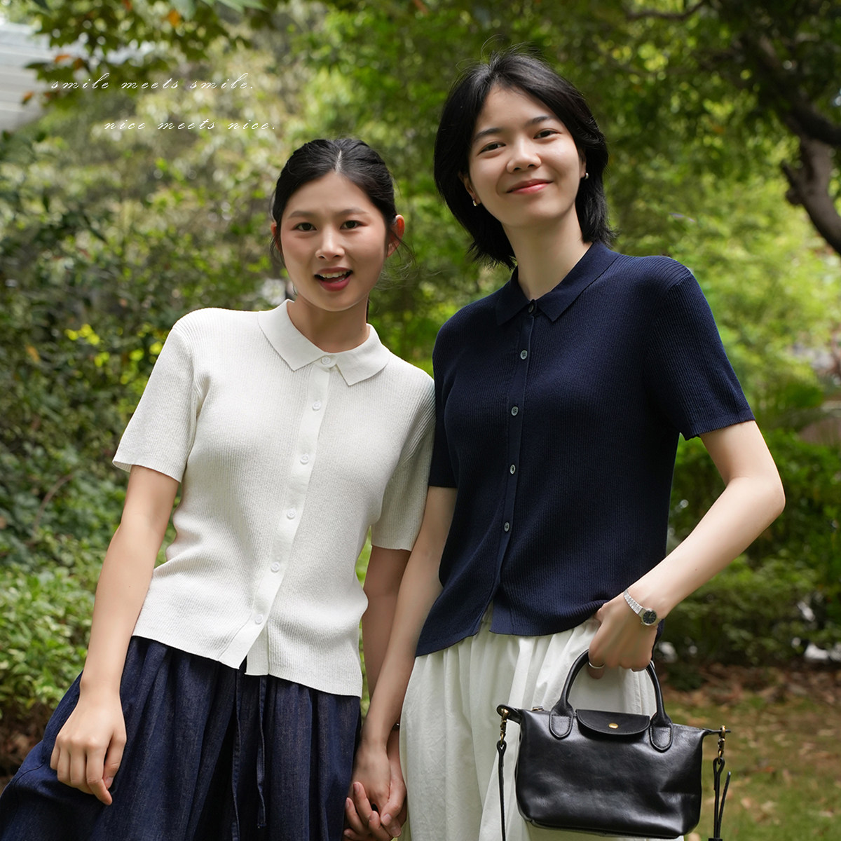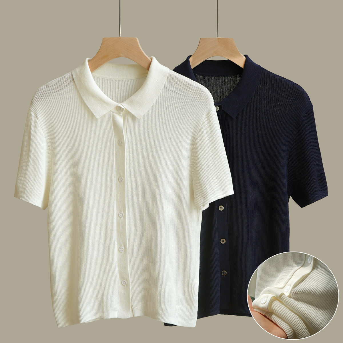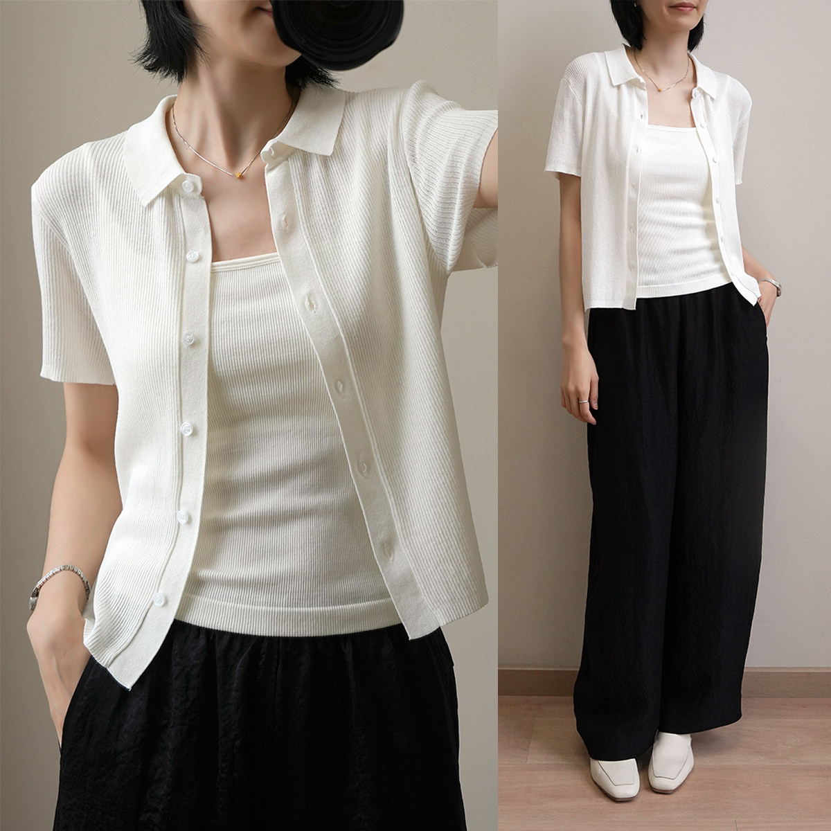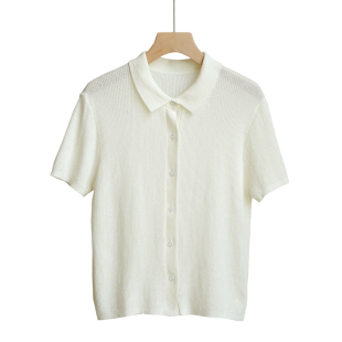 夏季 女士显瘦气质14针针织polo领短袖 开衫 翻领纯色薄款 T恤