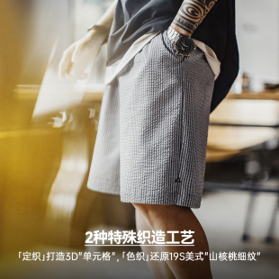 透气日系通勤简约五分裤 马登工装 短裤 休闲泡泡纱男裤 男夏春 轻美式