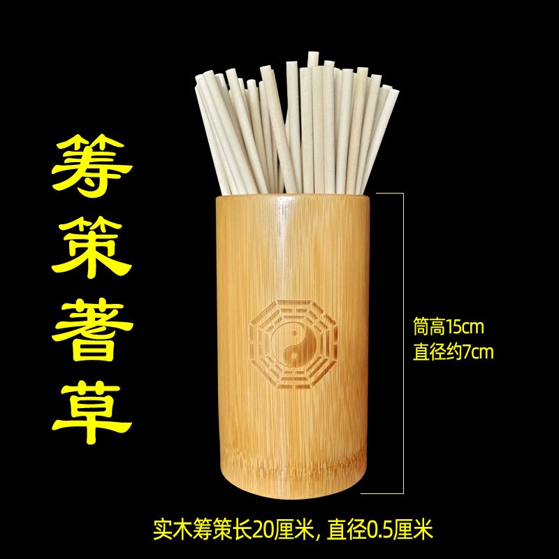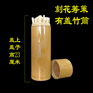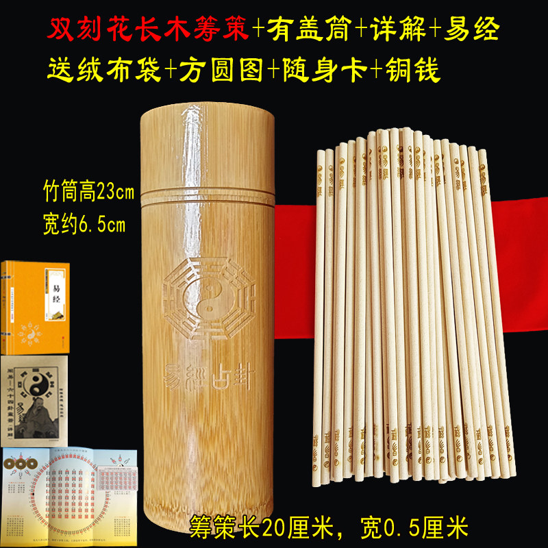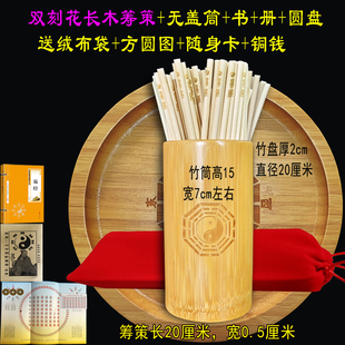 易学筹策蓍草加长刻花太极图印花易经算筹工具圆木棒带盖竹筒竹盘