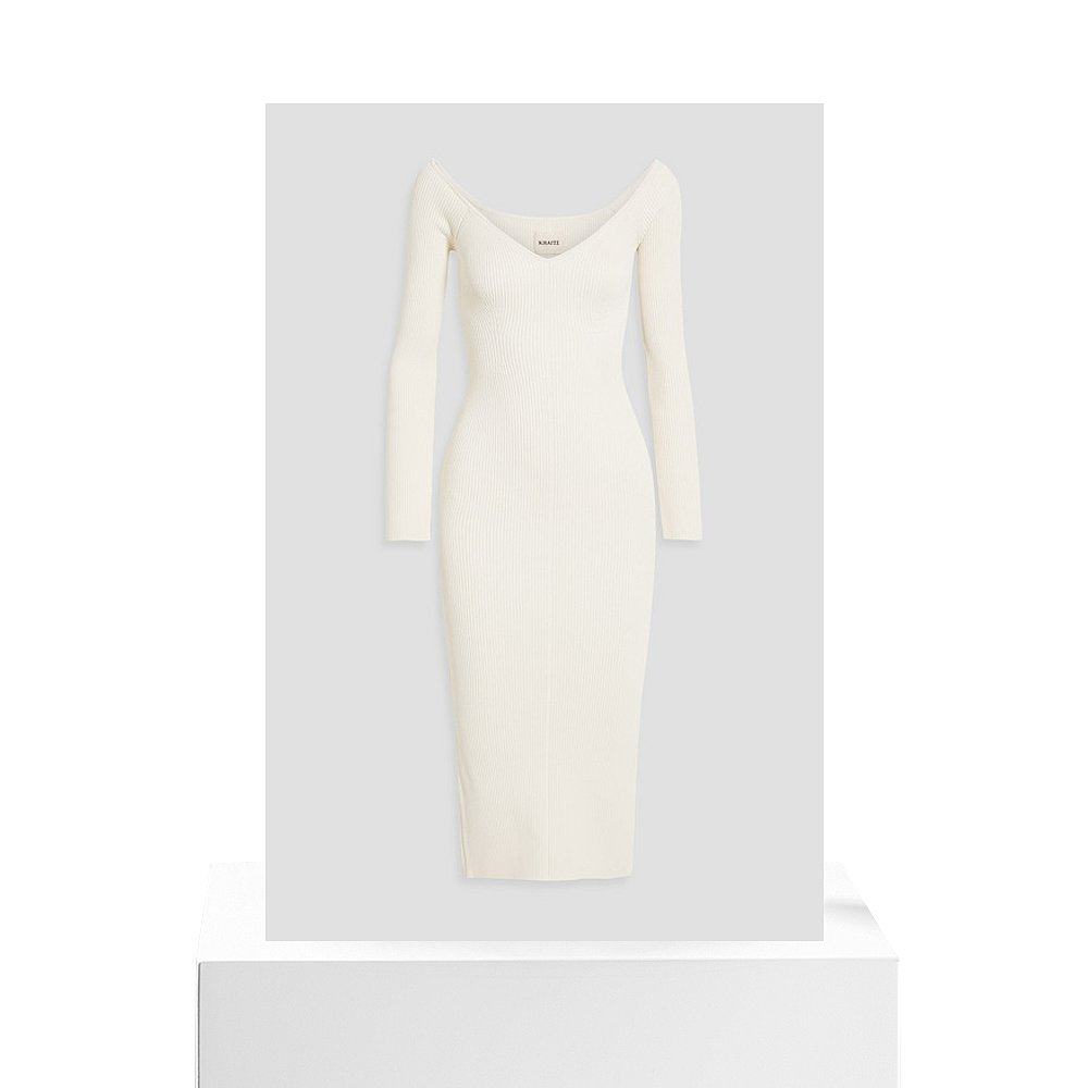 罗纹针织中长连衣裙 Pia 8605400IVORY 女士 香港直邮KHAITE