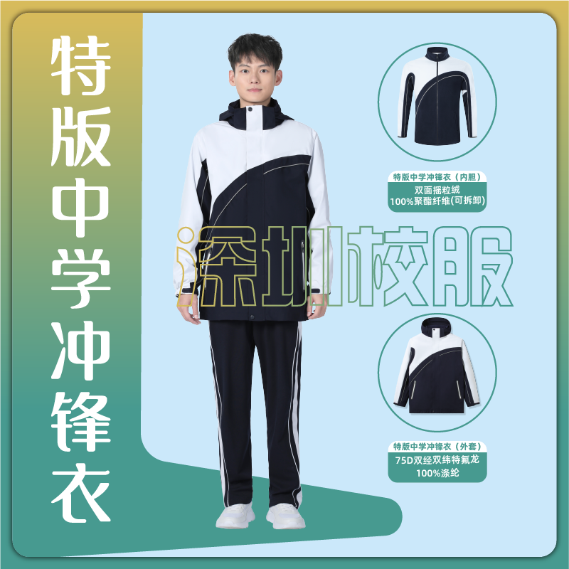 青青世界特版 三防面料保暖防风 深圳校服中学冲锋衣校服三合一冬季