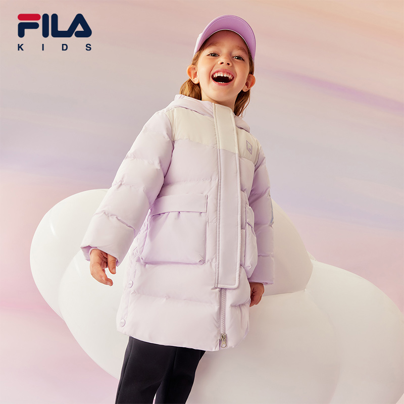 保暖舒适羽绒服潮 小童女童长款 FILA斐乐童装 儿童外套2024秋冬款