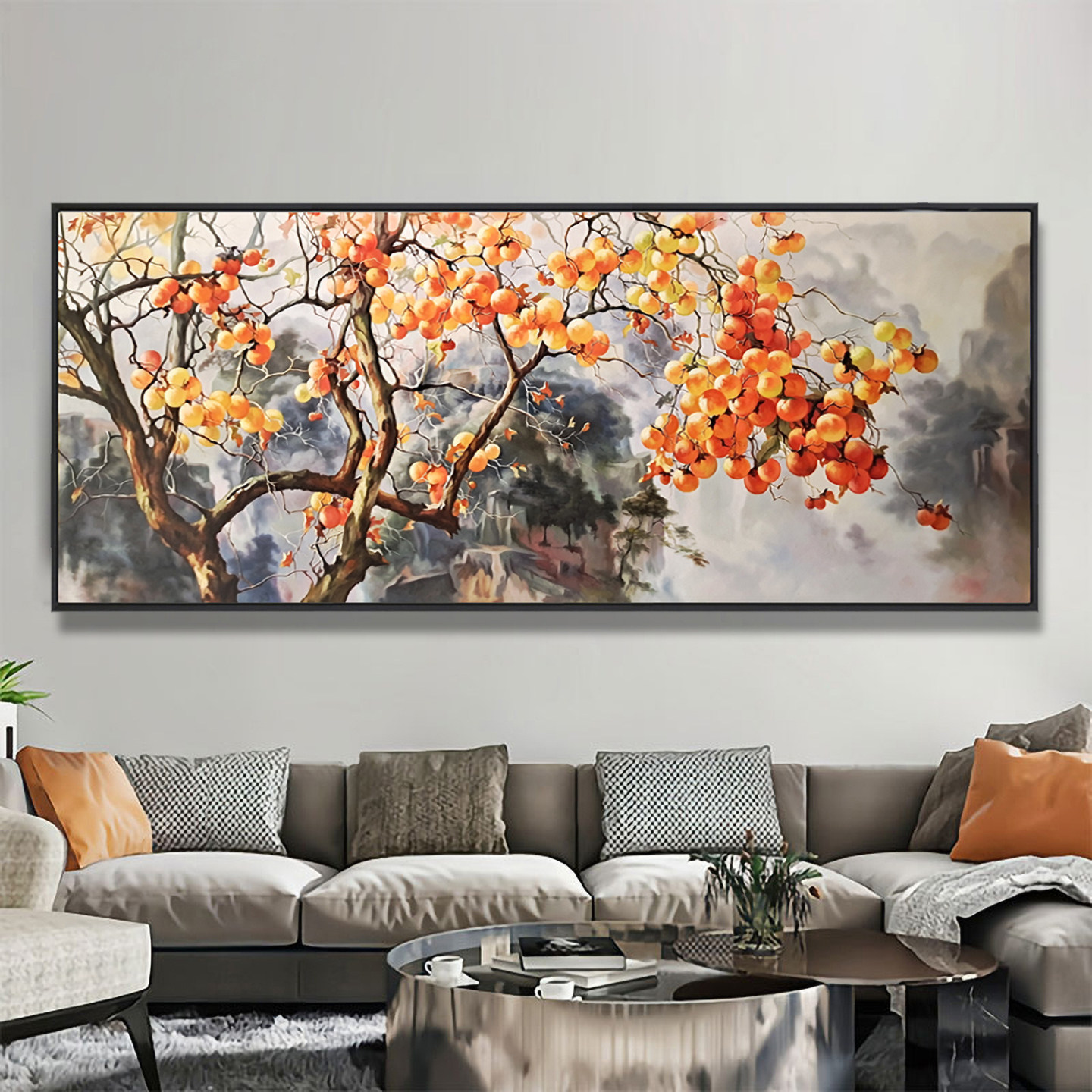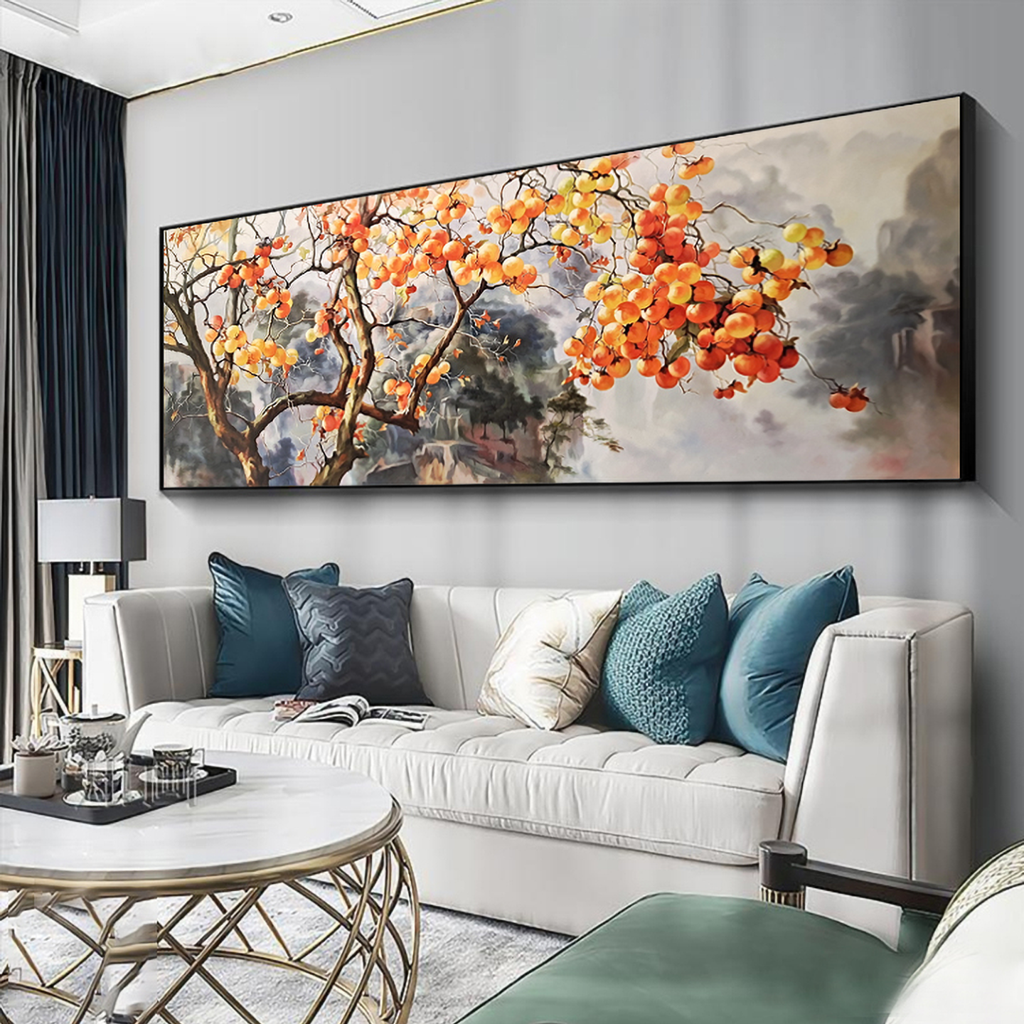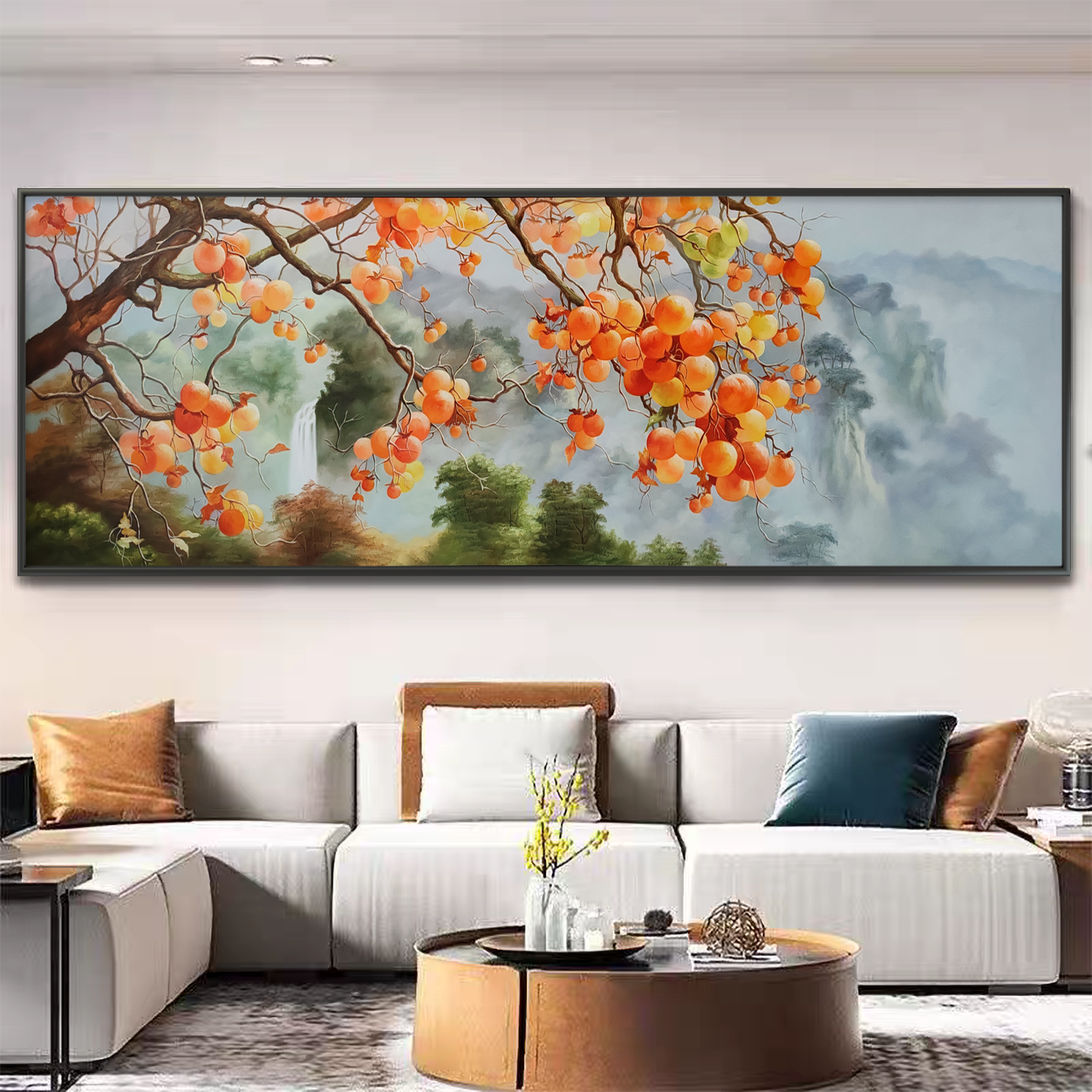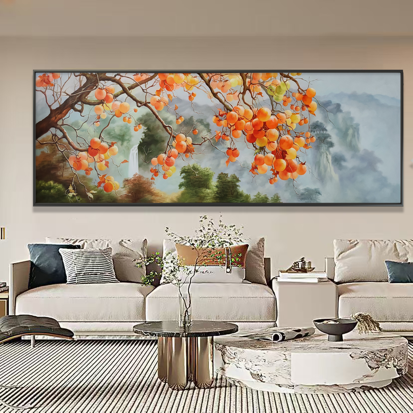 中古风挂画柿柿如意客厅画沙发背景墙装 复古油画餐厅壁画 饰画法式
