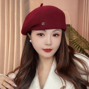定型显脸小画家帽蓓蕾帽 羊毛呢时尚 韩版 气质保暖贝雷帽子女秋冬季