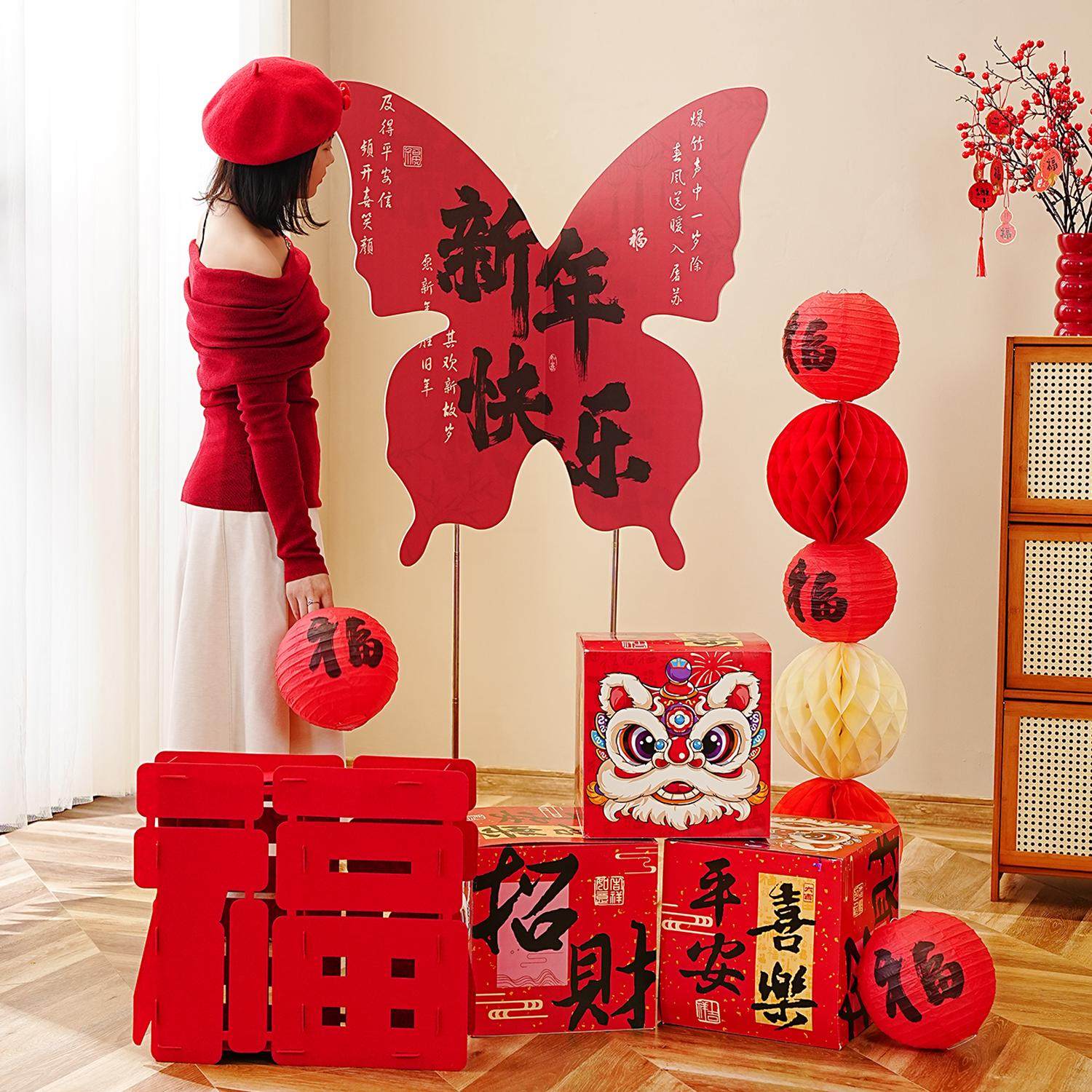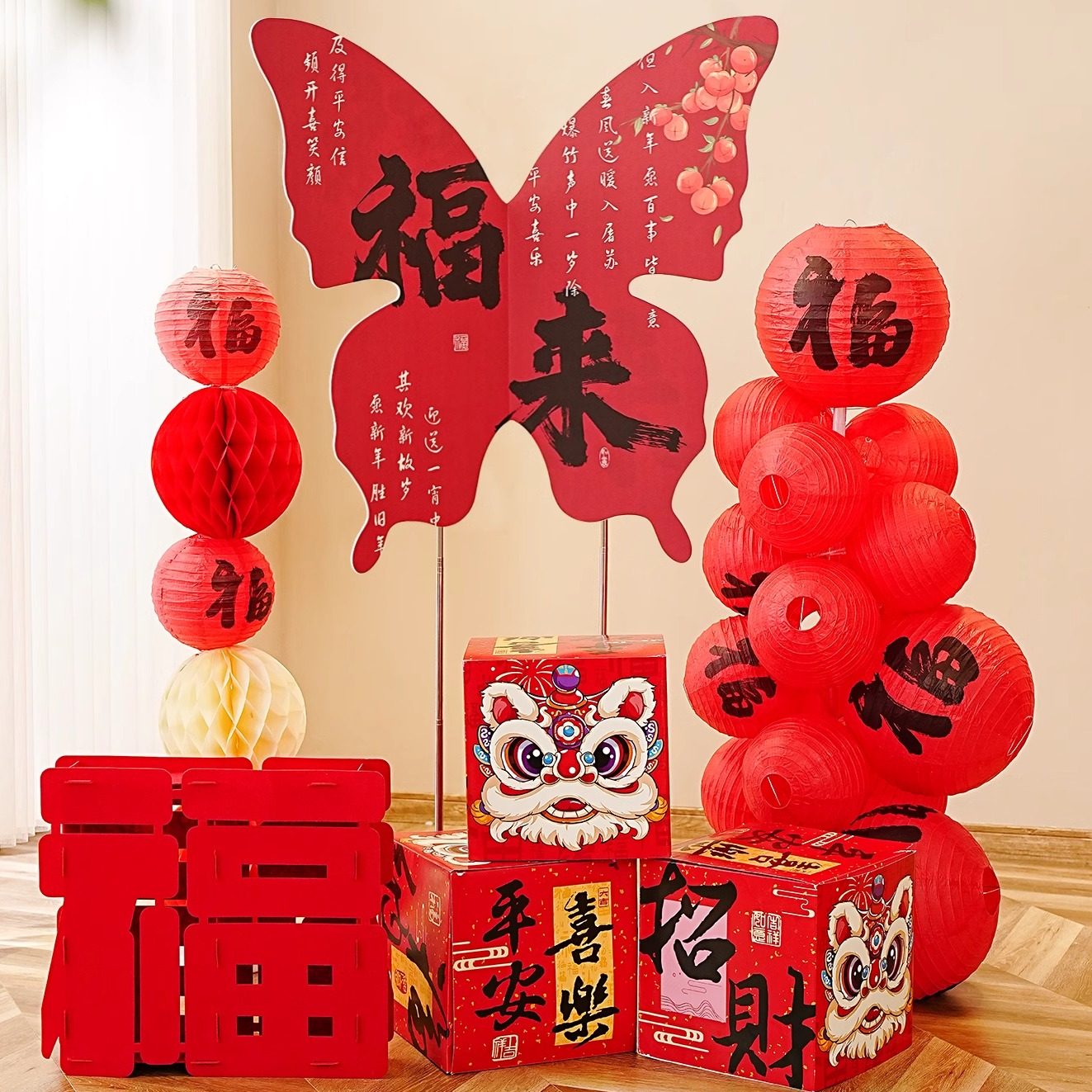 新年装 饰蝴蝶kt板马年春节场景布置圣诞橱窗商场过年落地福字摆件