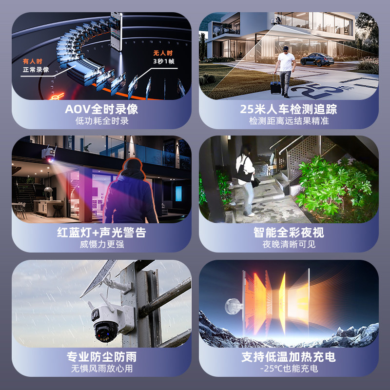 乐橙B7E摄像头360度无死角太阳能4G手机远程室外无线免插电监控器