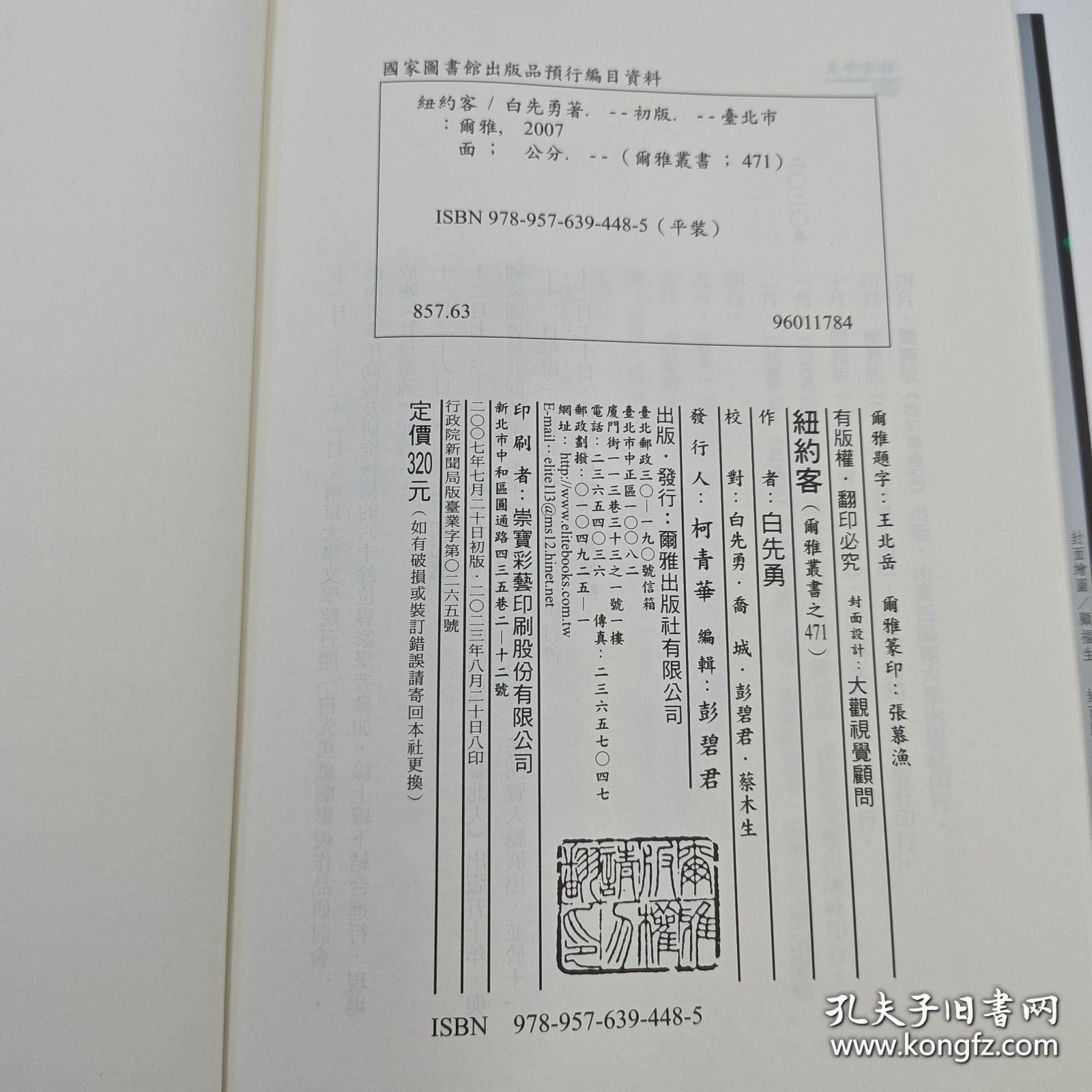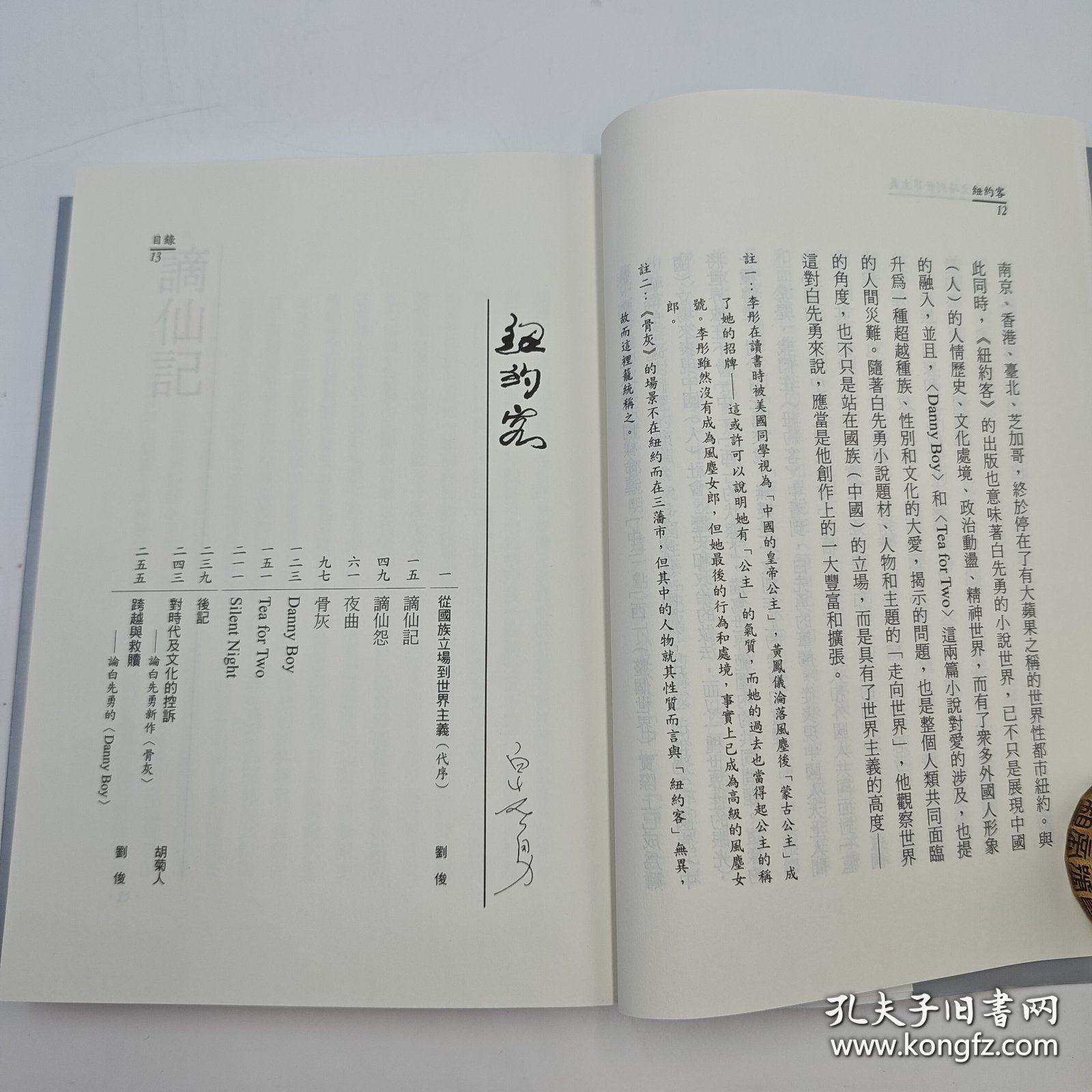 白先勇签名 钤印 港台原版 正版 16开锁线胶订 台湾允晨文化版 现货 紐約客