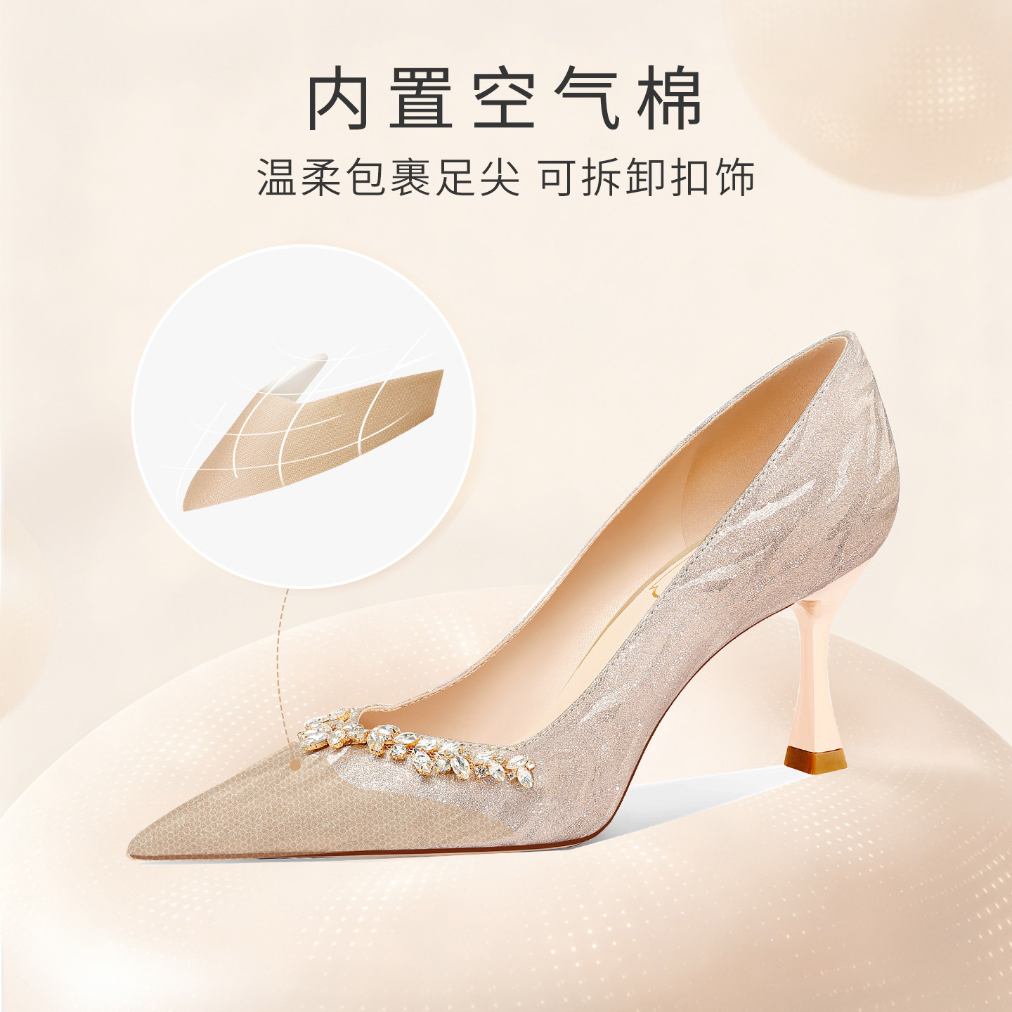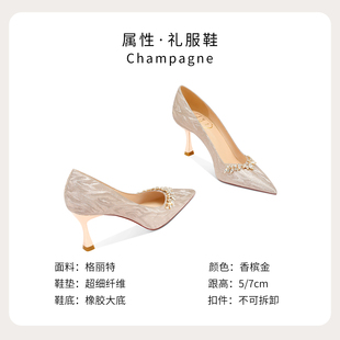 禾秀婚纱两穿新娘礼服高跟鞋 女2026新款 不累脚 金色婚鞋 爱丽拉法式