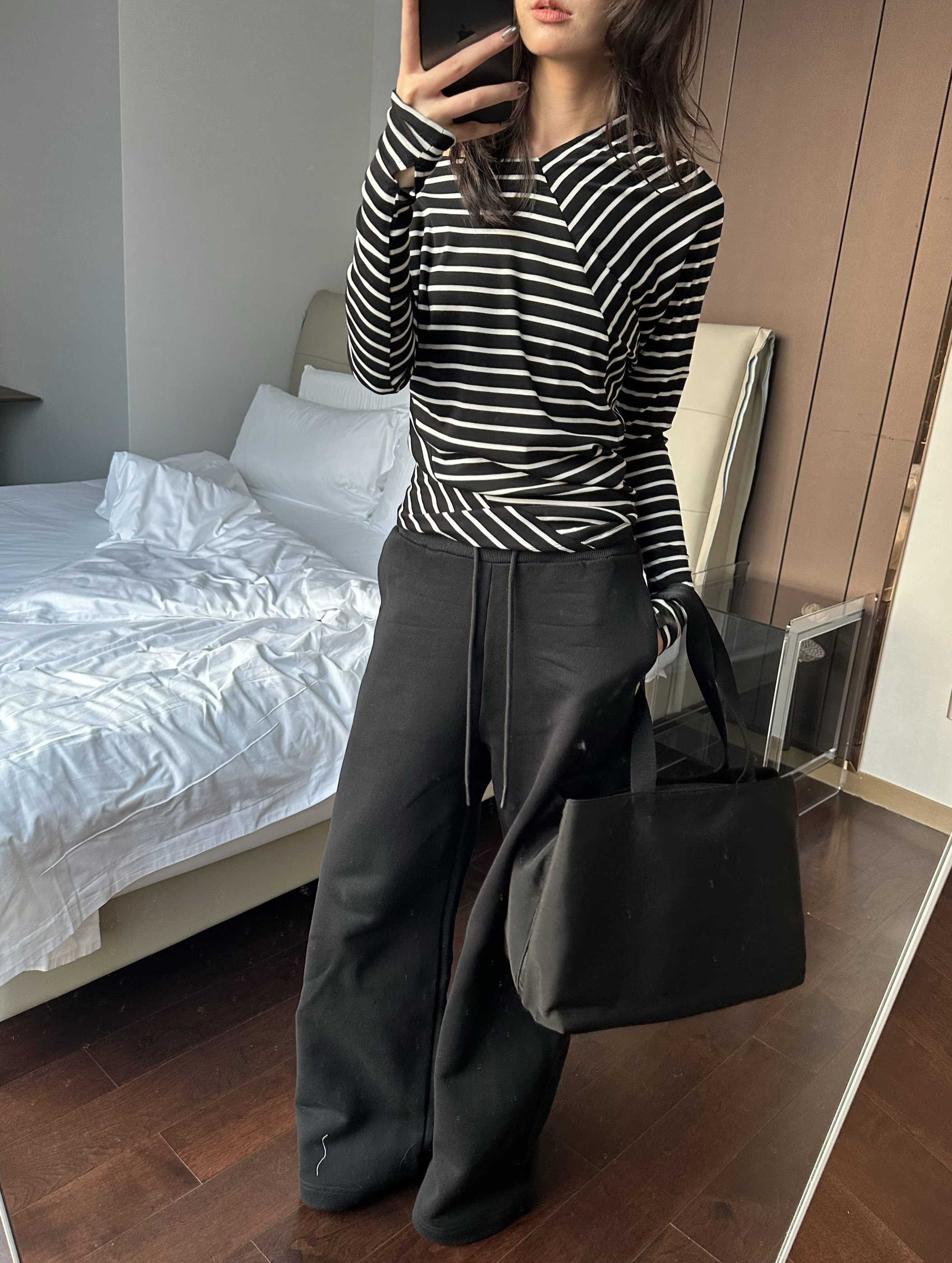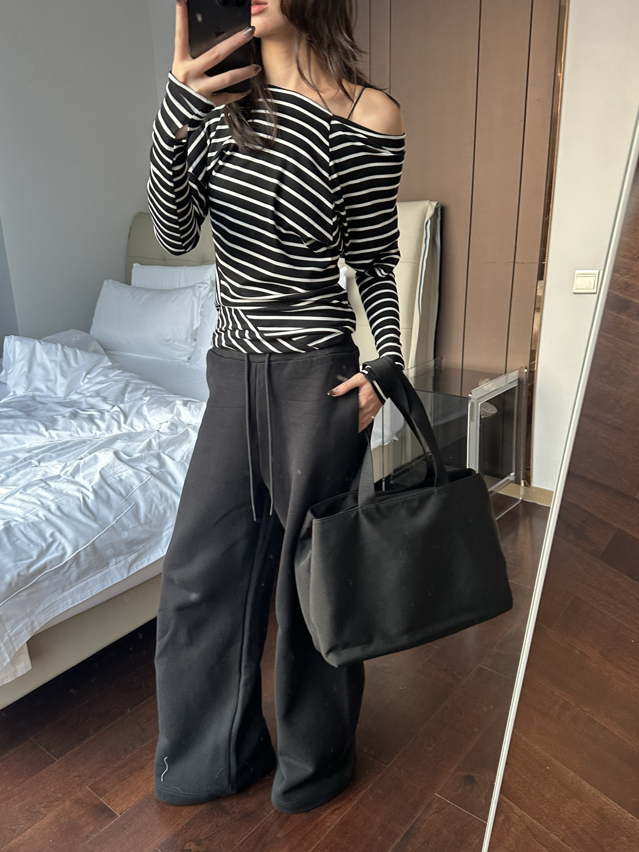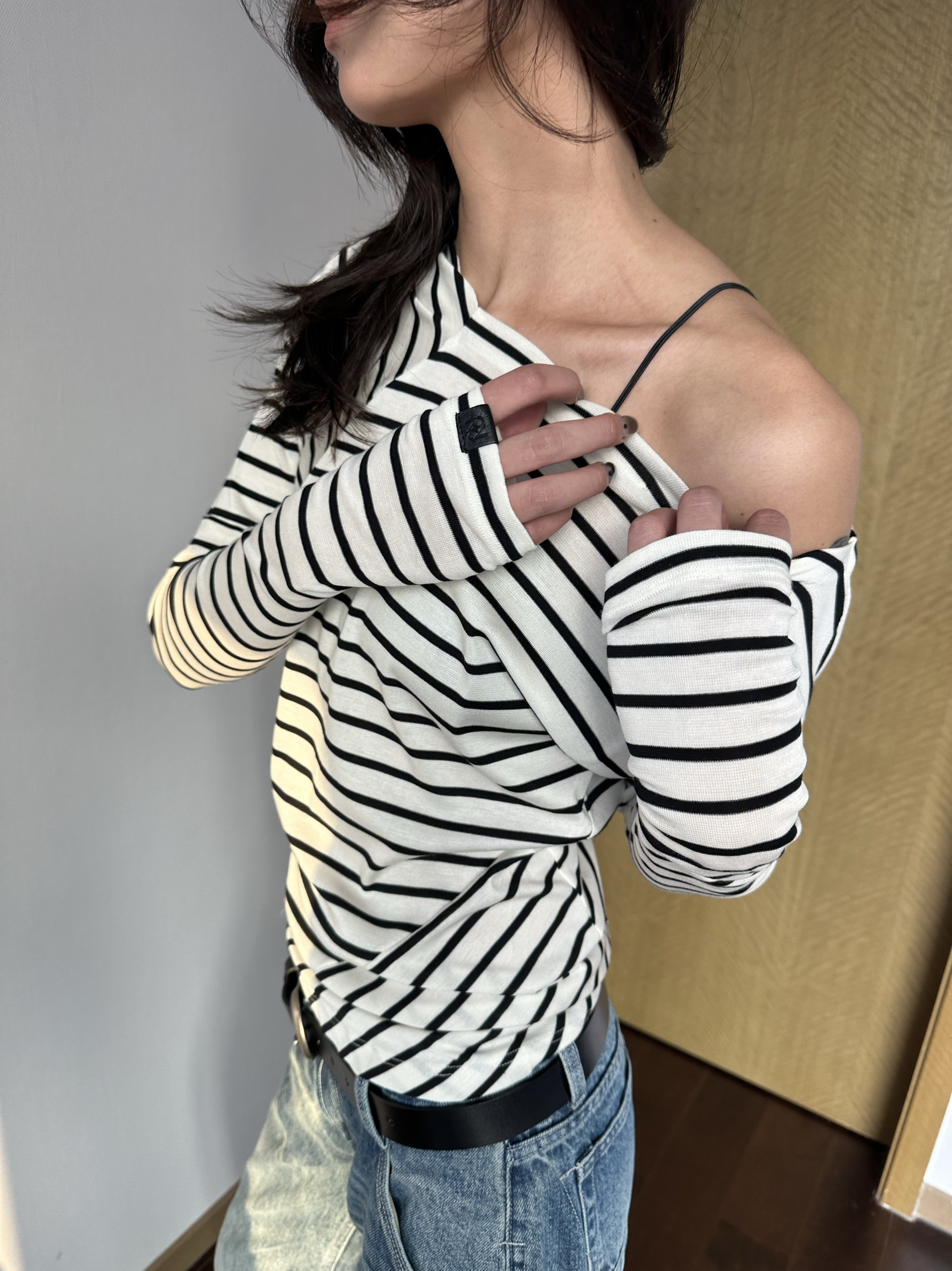 次日早晨|高品质 不对称剪裁露肩羊毛针织上衣