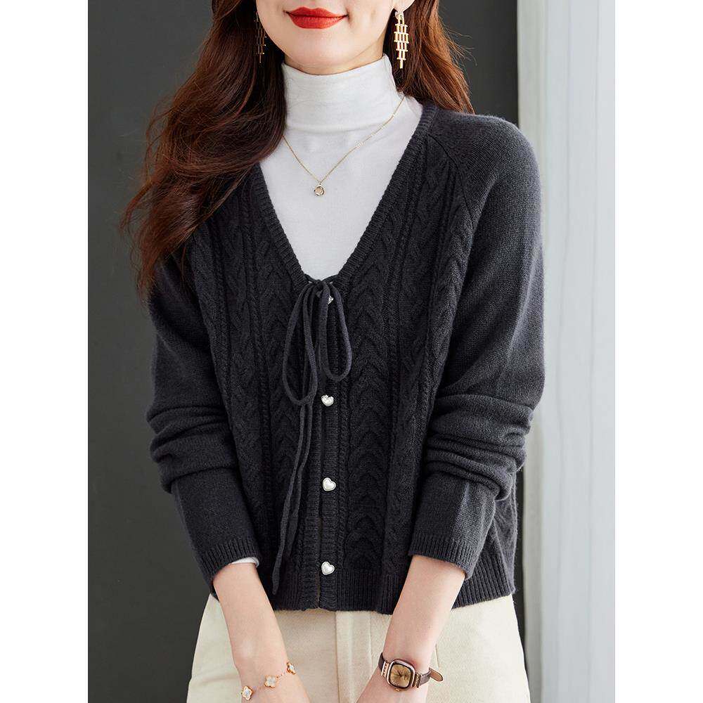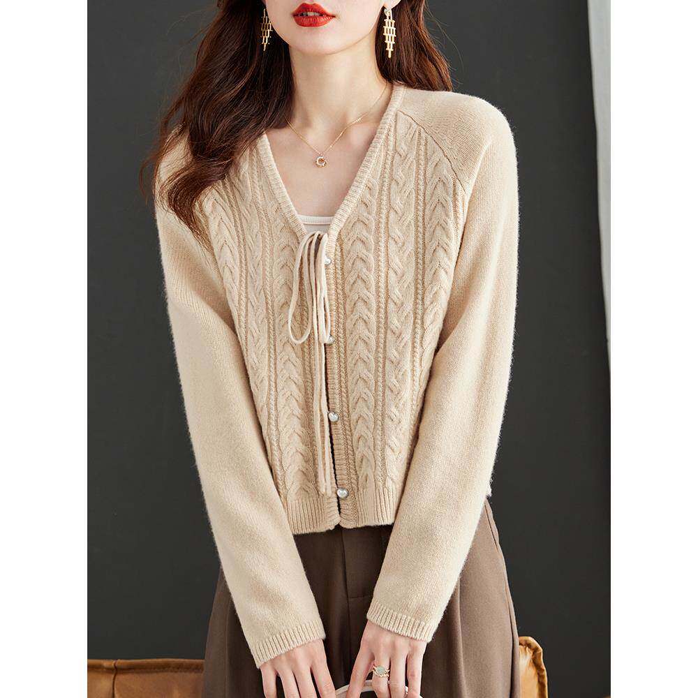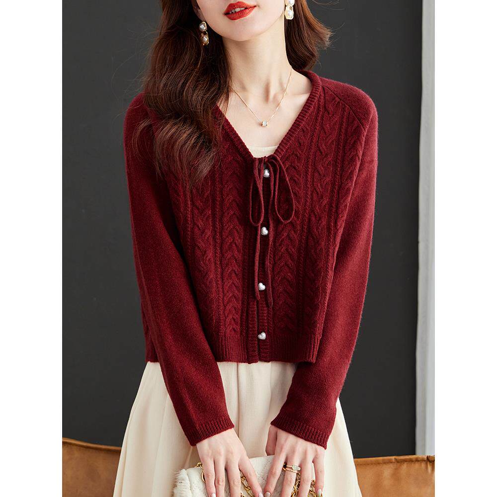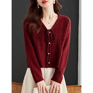 秋冬100纯羊毛针织开衫 爆款 春秋外搭2025新款 红色毛衣外套女短款