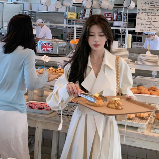 高级白色风衣外套女中长款 新款 收腰垂感英伦风休闲大衣 春季 ByYou