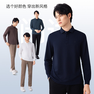 男 名盾2025年秋冬桑蚕丝休闲翻领长袖 Polo衫 长袖 T恤打底衫