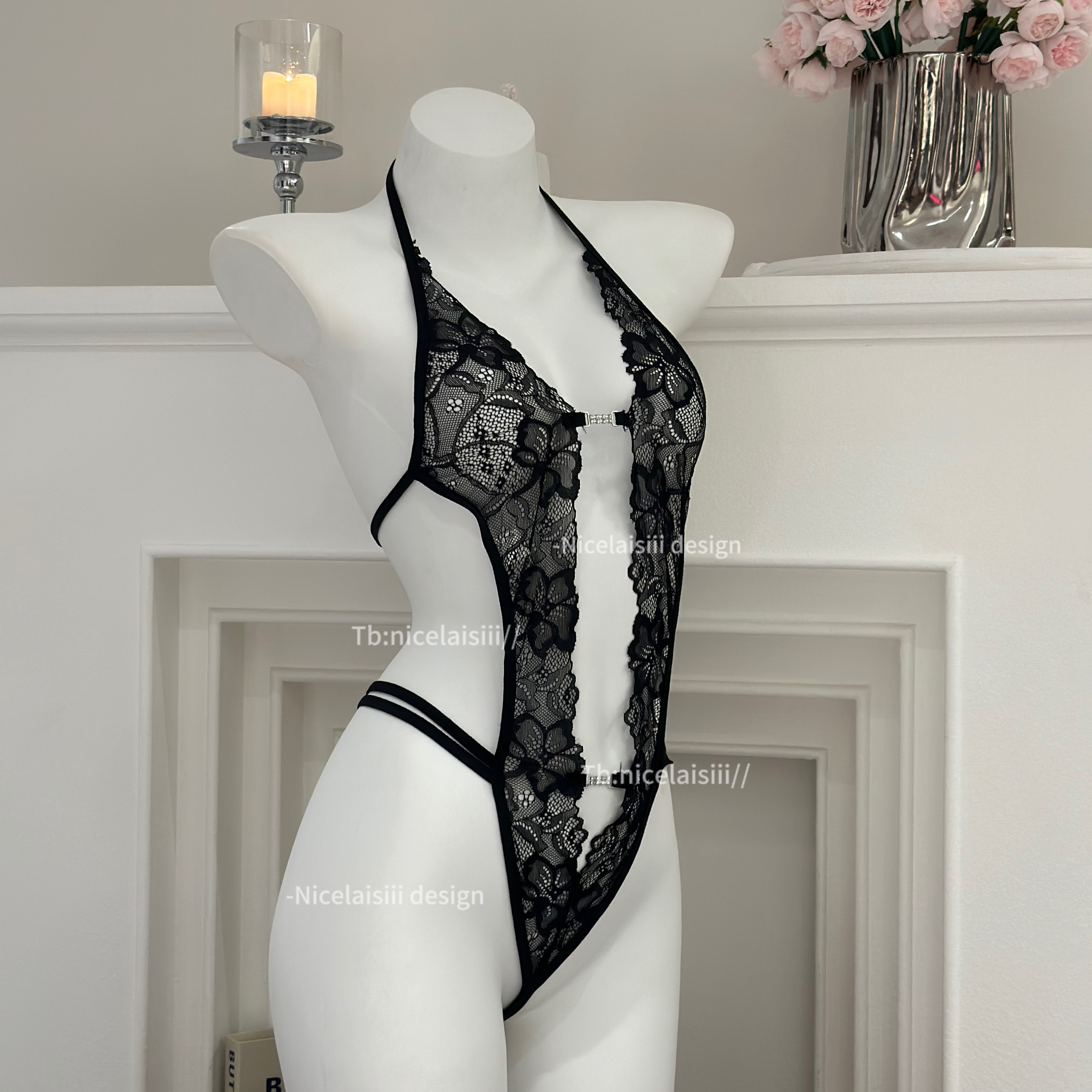 Nicelaisiii拥吻 蕾丝性感连体内衣挂脖约会御姐纯欲风上衣镂空