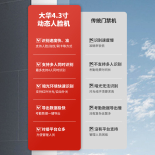 大华4.3寸人脸考勤门禁HD 大华人脸机 ASI31D人脸指纹门禁电锁套装