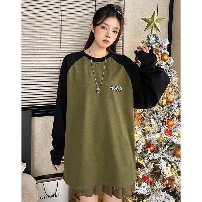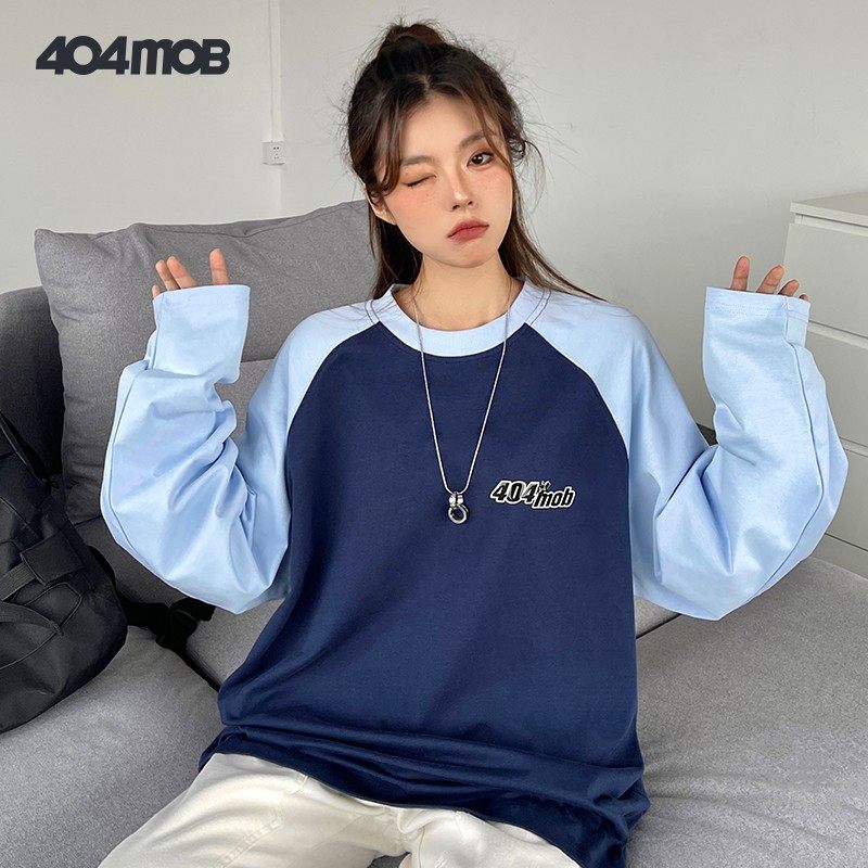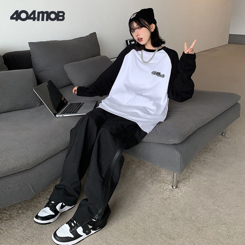 撞色拼接打底 T恤男美式 404MOB秋季 基础重磅星标魔术纯棉插肩长袖