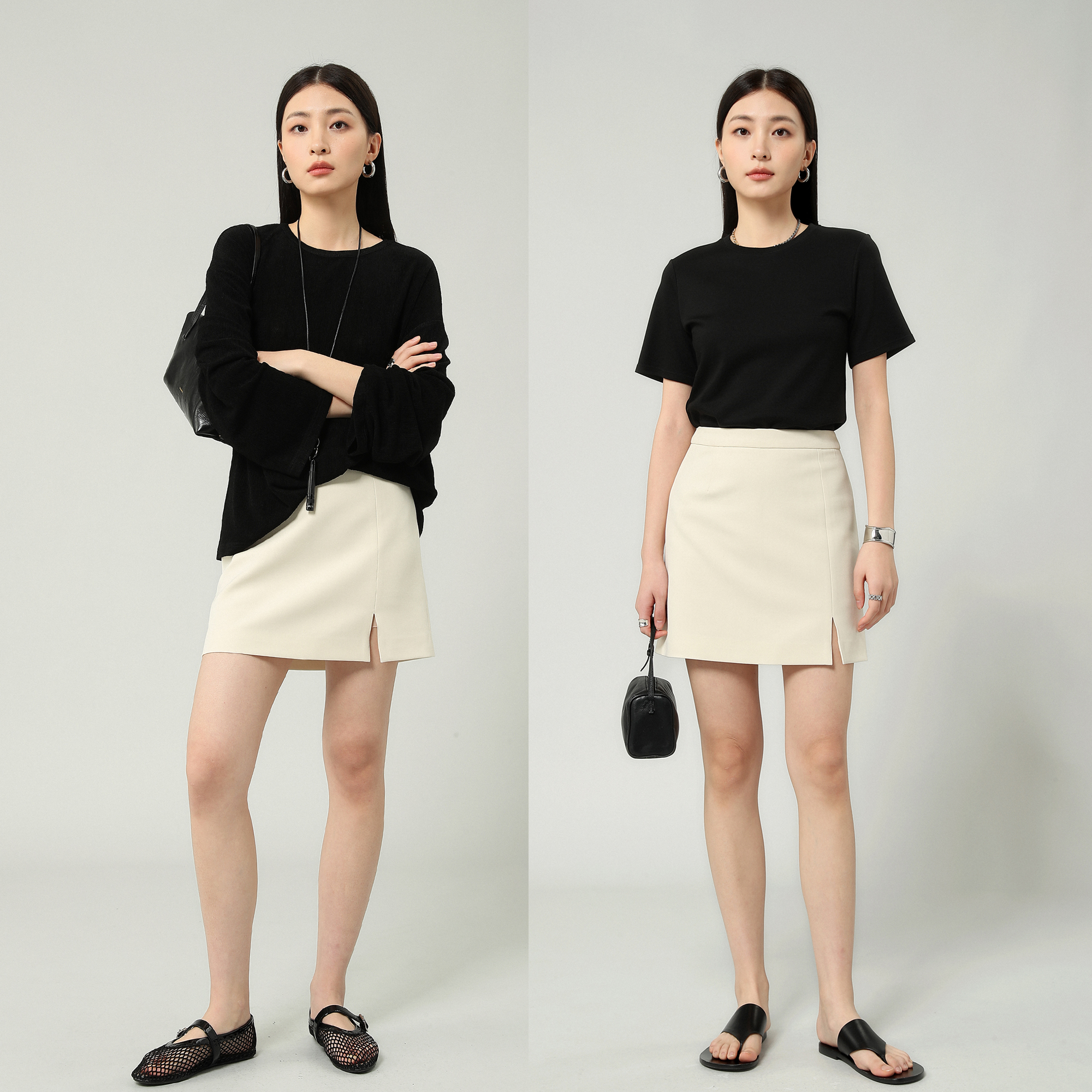 高支高密抗皱小A开叉休闲时髦气质高腰短裙 升级 FANLE STUDIOS