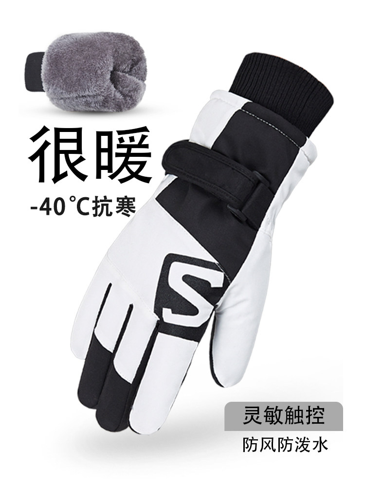 骑行手套男女冬季 户外可触屏滑雪电动车防寒保暖防风东北加绒手套