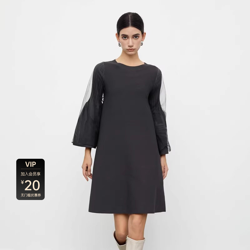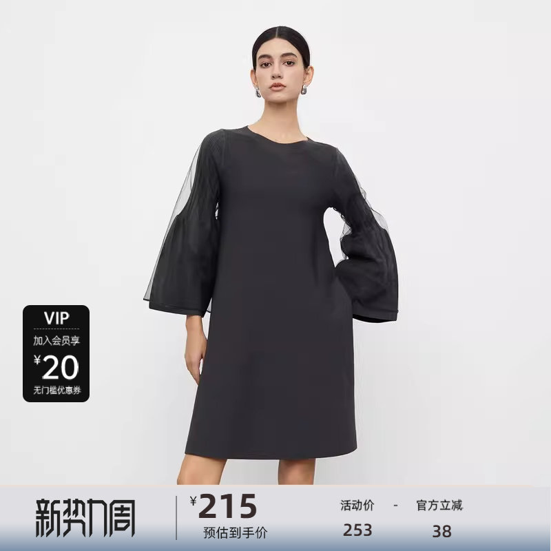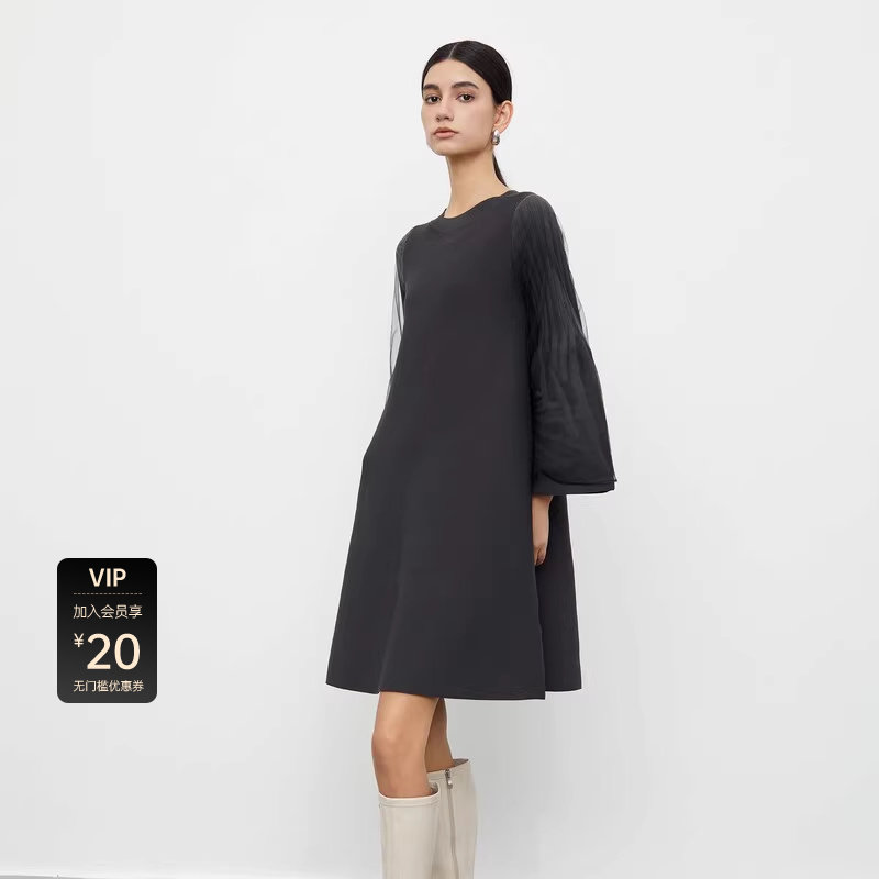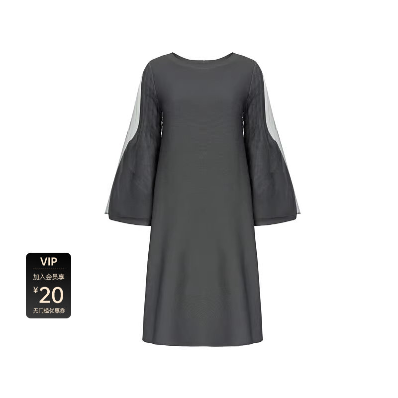 sdeer圣迪奥女装 针织连衣裙S233Z12E9 秋圆领晕染网纱喇叭袖
