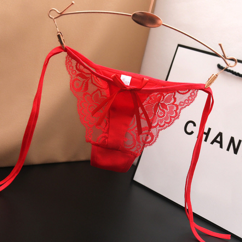 包臀不夹臀纯棉裆红色内裤 遐中腰平角裤 斑纹蕾丝 女薄 小青提