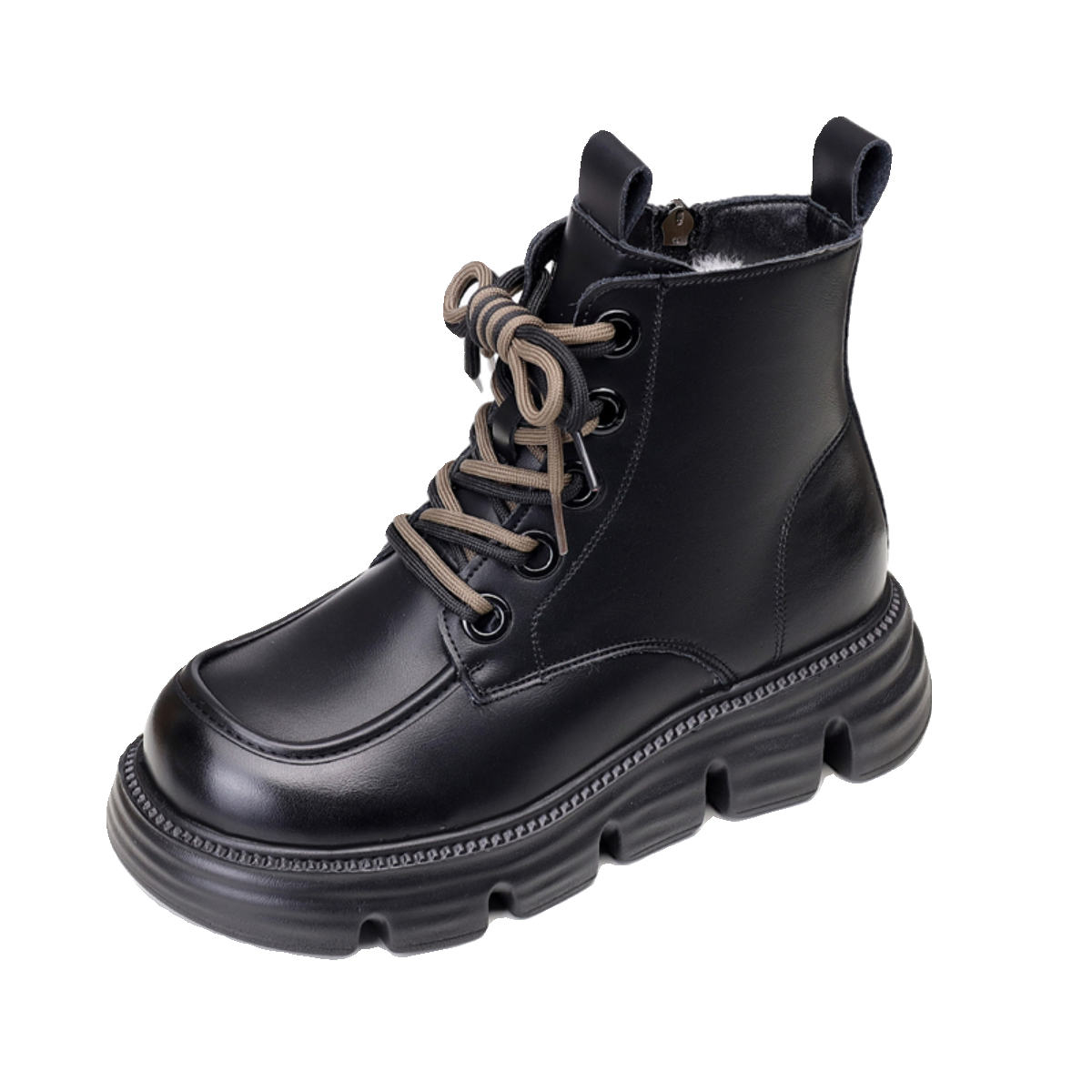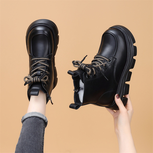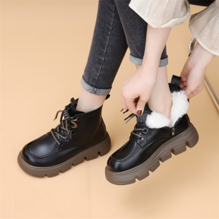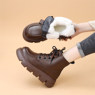 真皮厚底马丁靴女2025年秋冬新款 防滑软底羊毛雪地靴防水加厚棉靴