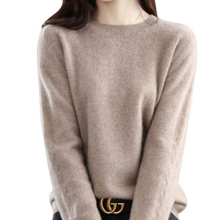 女士中年妈妈百搭毛衣针织衫 恒源祥集团彩羊春秋低圆领薄款 羊毛衫