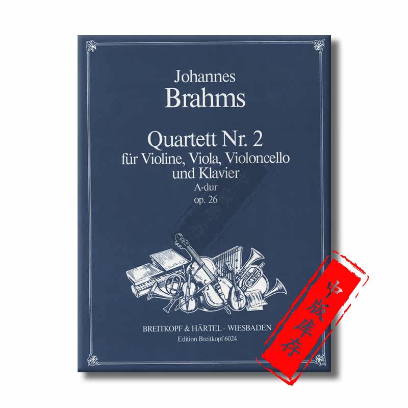 乐谱书 EB6024 A大调 Quartet Piano Brahms 德国大熊原版 总分谱 Op26 第二钢琴四重奏 勃拉姆斯