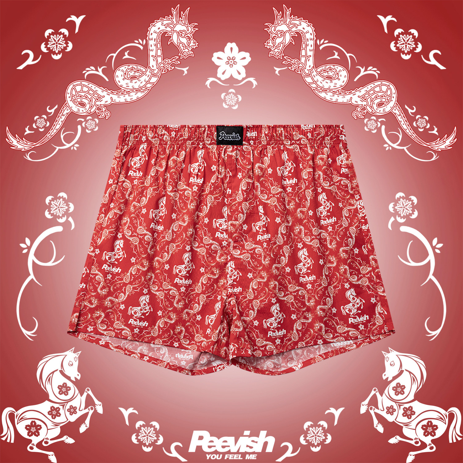 头裤 本命年纯棉男士 孖烟通女居家短裤 宽松大红色平角内裤 衩 阿罗裤