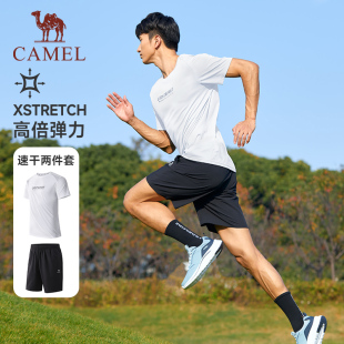 短裤 骆驼运动套装 T恤防紫外线透气速干短袖 2025夏季 两件套男 男士