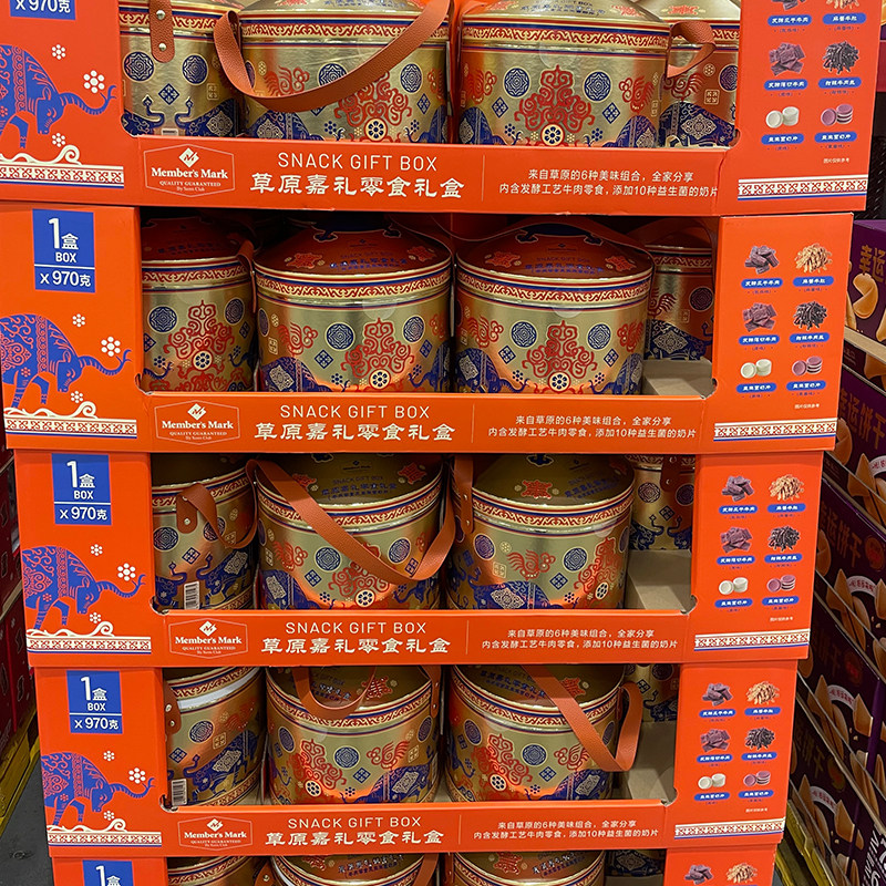 超市草原嘉礼零食礼盒720g蒙古包牛肉零食抱抱桶节日送礼春节礼物