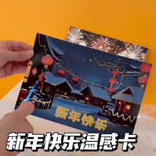 温变圣诞贺卡高颜值燃烧变色灯光小屋雪景插画装 饰卡片圣诞节礼物平安夜留言手写明信片创意高级情侣送男女友