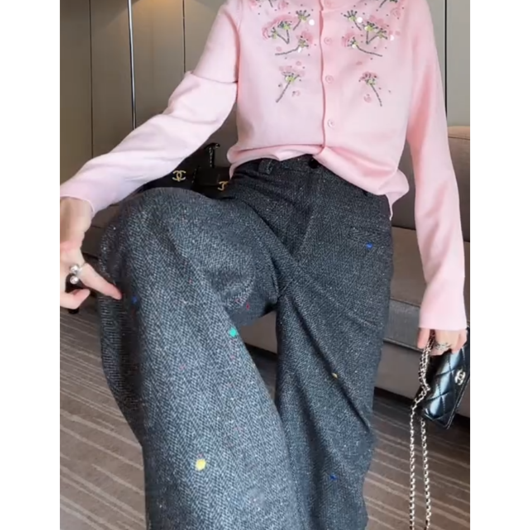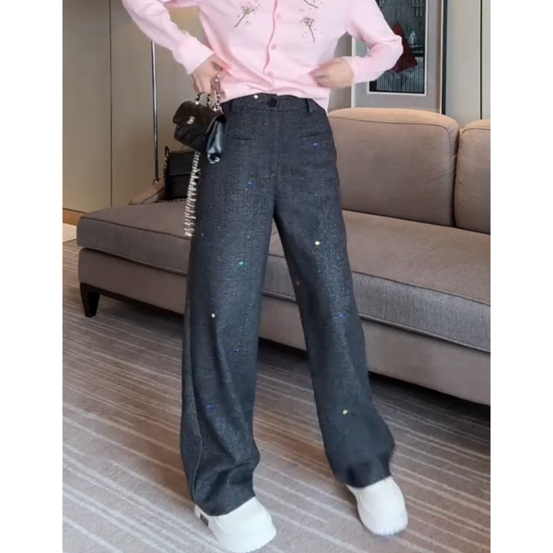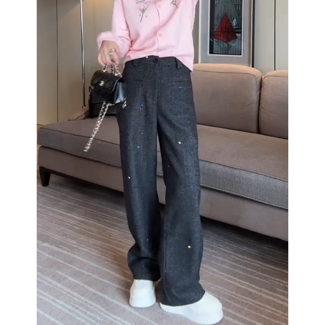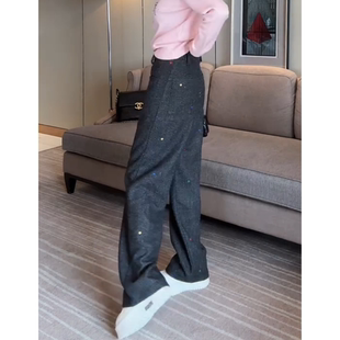 梨形高腰显瘦宽松阔腿裤 厚款 2024年冬季 景倩妮韩系彩点百搭休闲裤