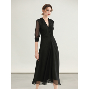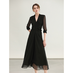 裙FR7085 COCOBELLA赫本风假两件收腰黑金色连衣裙衬衫 3件5折