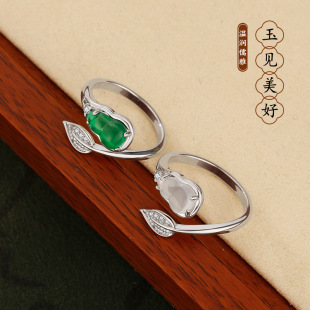925纯银和田玉葫芦叶子戒指女2024年新款 复古轻奢小众指环 新中式