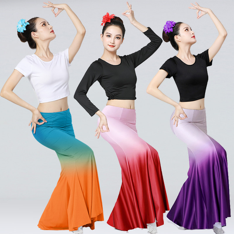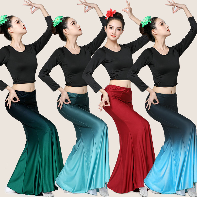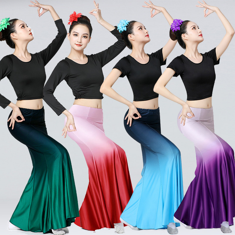 傣族舞蹈服演出服女孔雀舞包臀裙半身裙鱼尾裙艺考练习裙表演服装