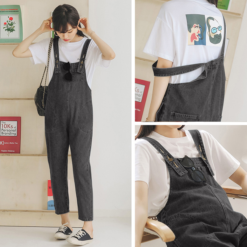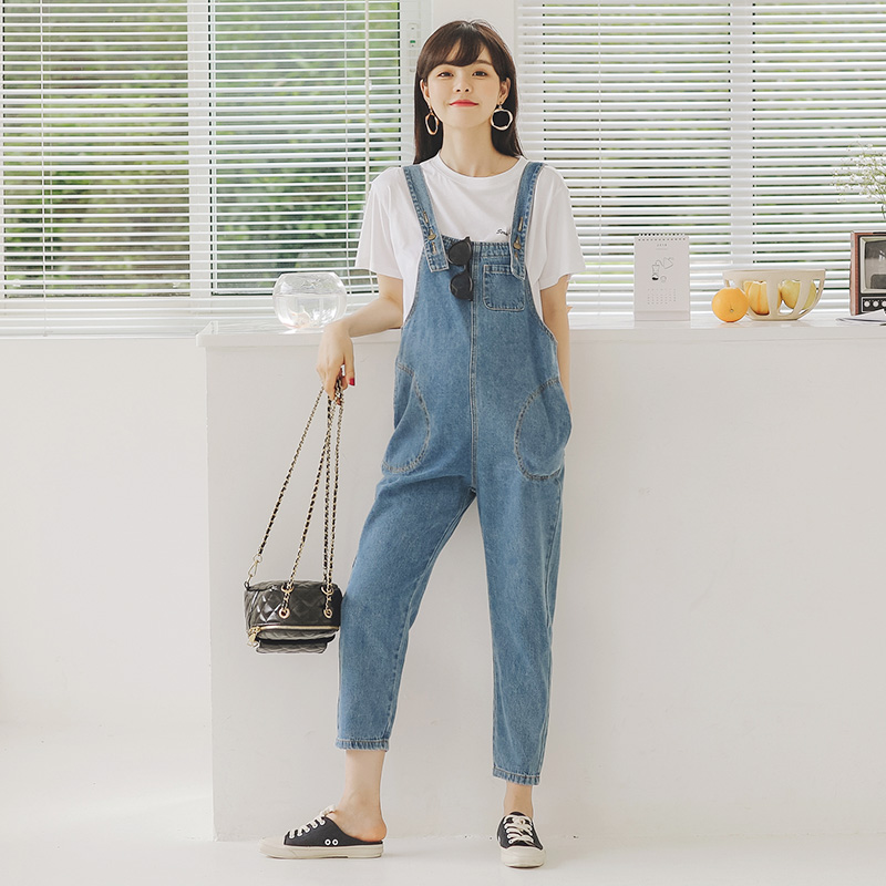 春夏款 套装 v外穿牛仔裤 夏季 子网红夏 孕妇裤 孕妇阔腿裤 孕妇背带裤