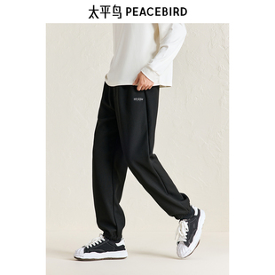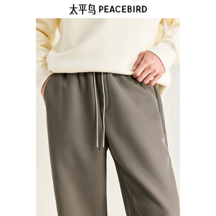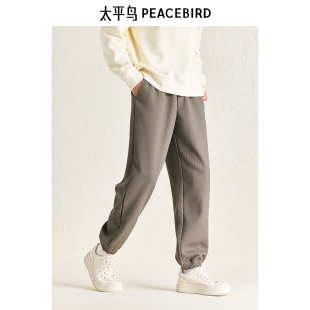 加绒保暖华夫格运动裤 太平鸟男装 印花直筒束脚卫裤 冬季 潮 休闲裤