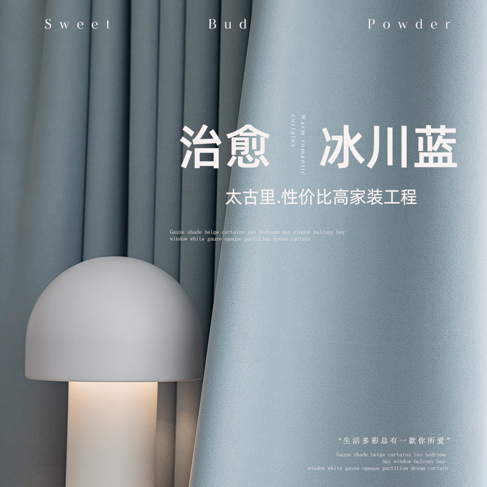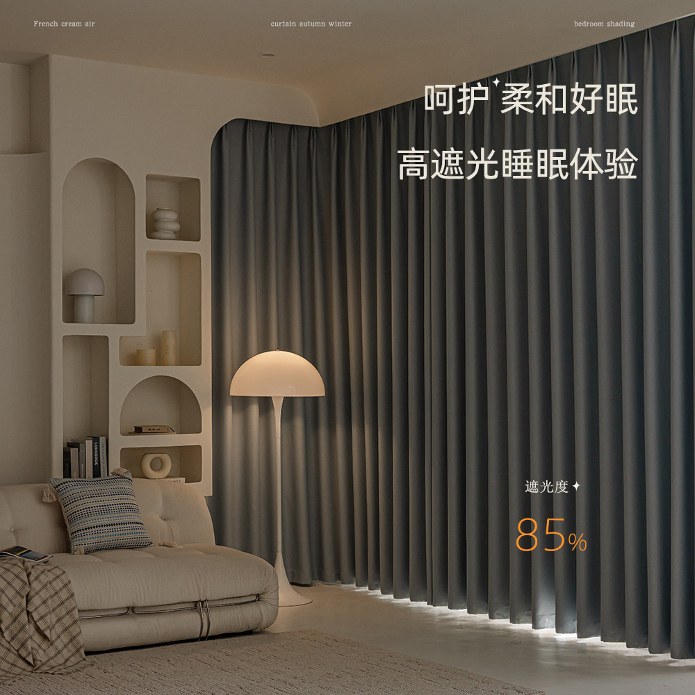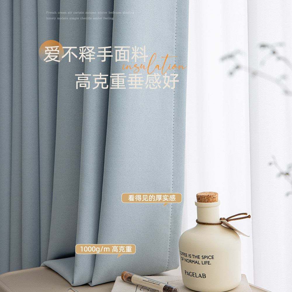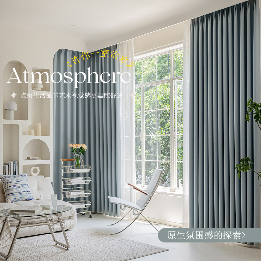 加厚黑金高全遮光窗帘2024新款 客厅高级感蓝色面料轻奢现代简约