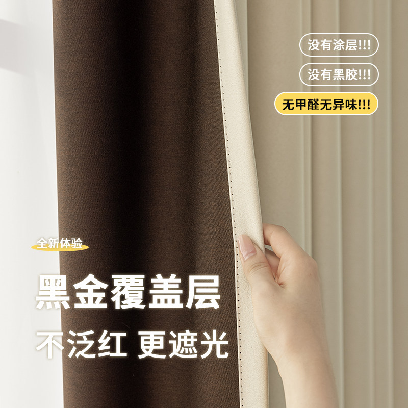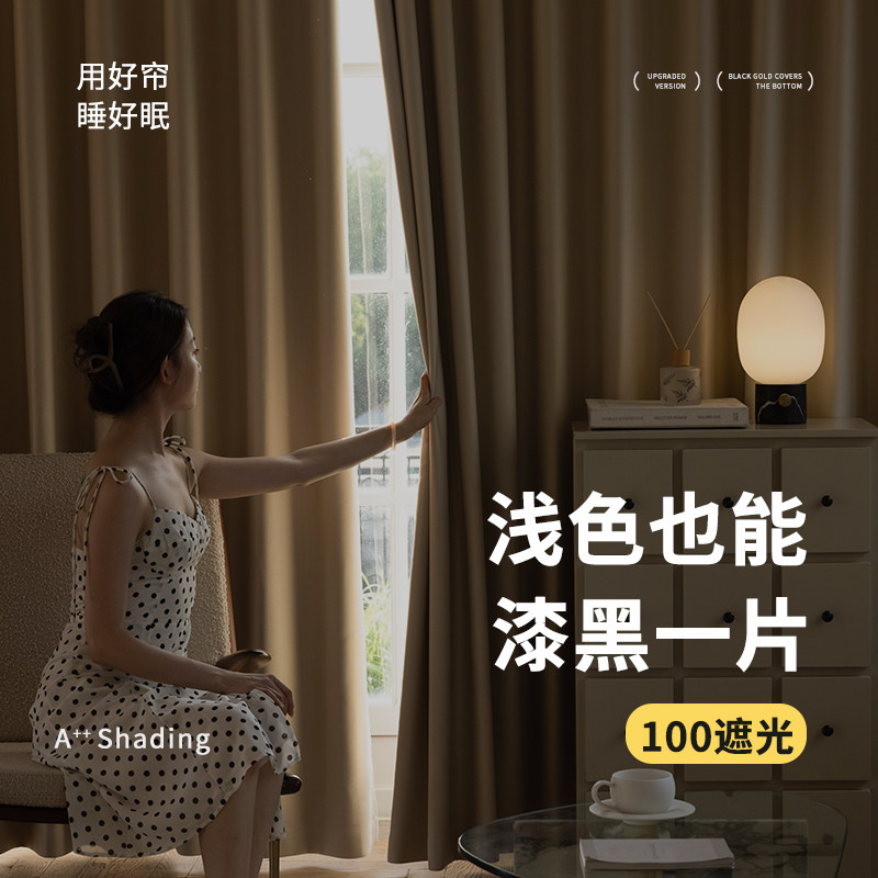 奶油风卧室100全遮光窗帘不透光2024新款 遮阳客厅阳台防晒 挂钩式