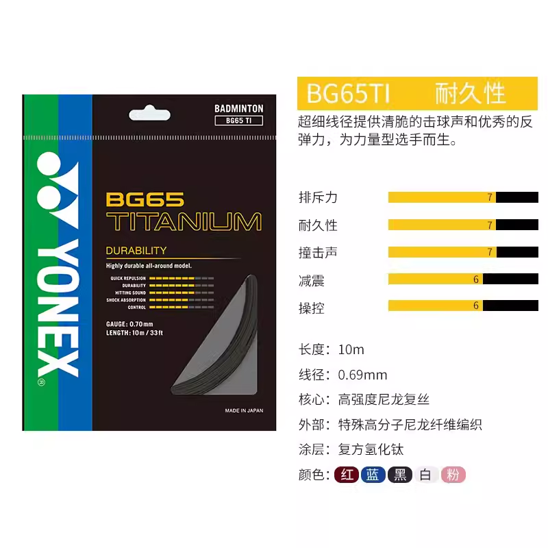 YONEX尤尼克斯BG65Ti羽毛球拍线bg65耐久型日本产 实体专卖店发