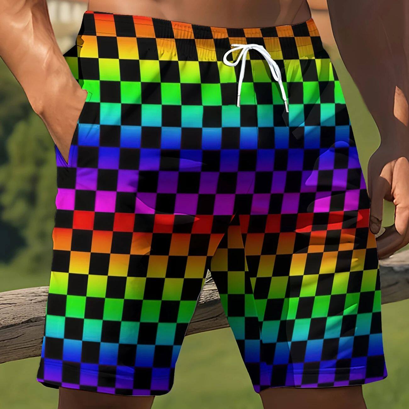 热卖 五分沙滩裤 款 男生休闲时尚 渐变彩虹图案3d印花短裤 夏季