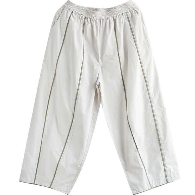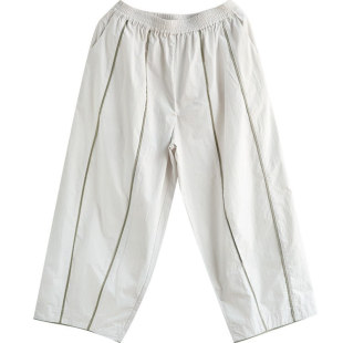 子 撞色竖条纹轻薄显瘦微茧型阔腿九分裤 谷家 立体剪裁全棉休闲裤